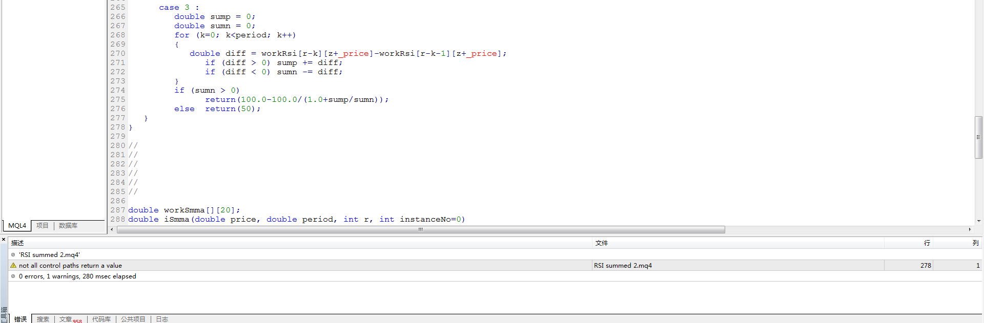 RSI summed 2 reports an error when generating ex4, please fix it. Thanks a lot!