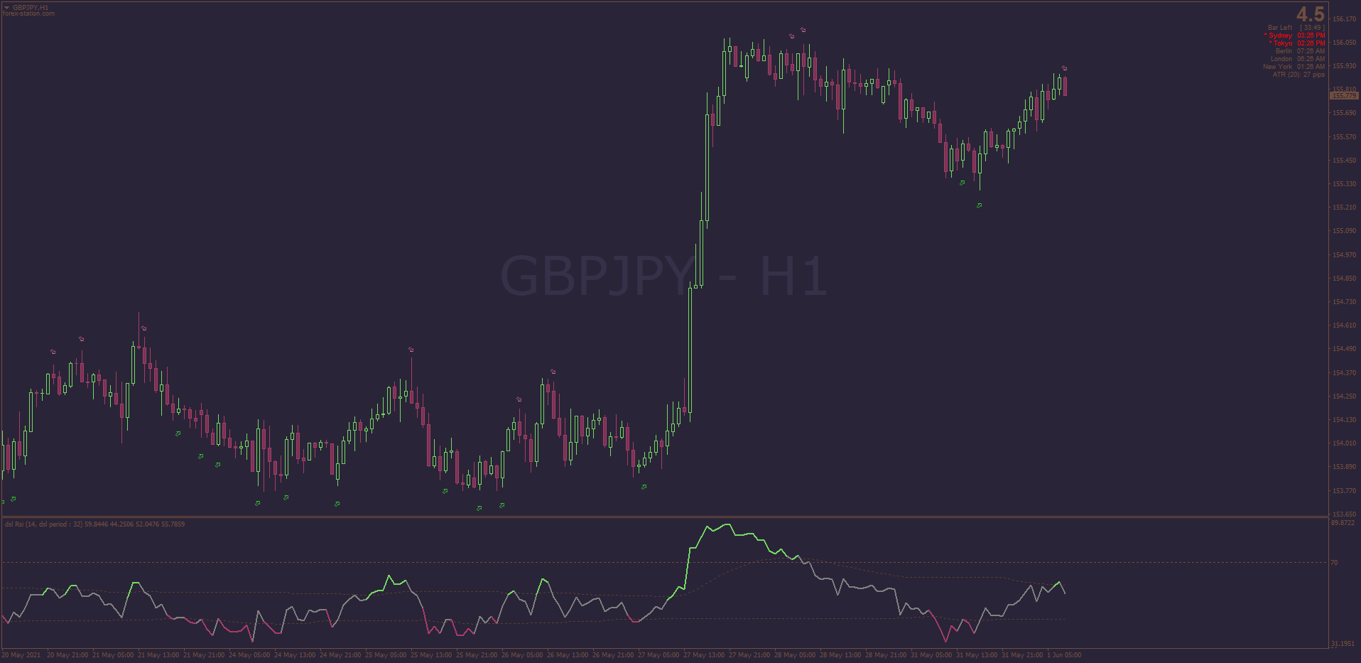 Using it in standard RSI form with Arrows upon Exit of the Overbought/Oversold zones gives traders a good indication of turning points.