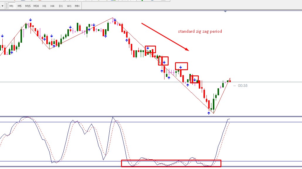 can you please show stoch arrows at OB/OS zones K & D crosses as per trend direction.