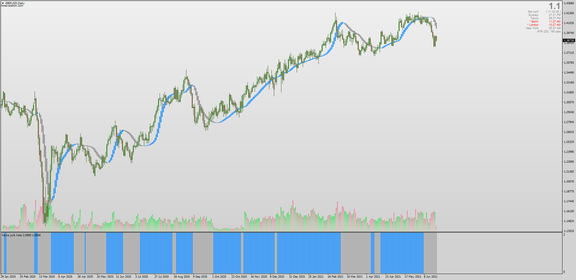 This one is a bit old-school and came from the Forex-TSD days, the Jurik Smoothed HAMA (Heiken Ashi Moving Average) with accompanying Histogram.