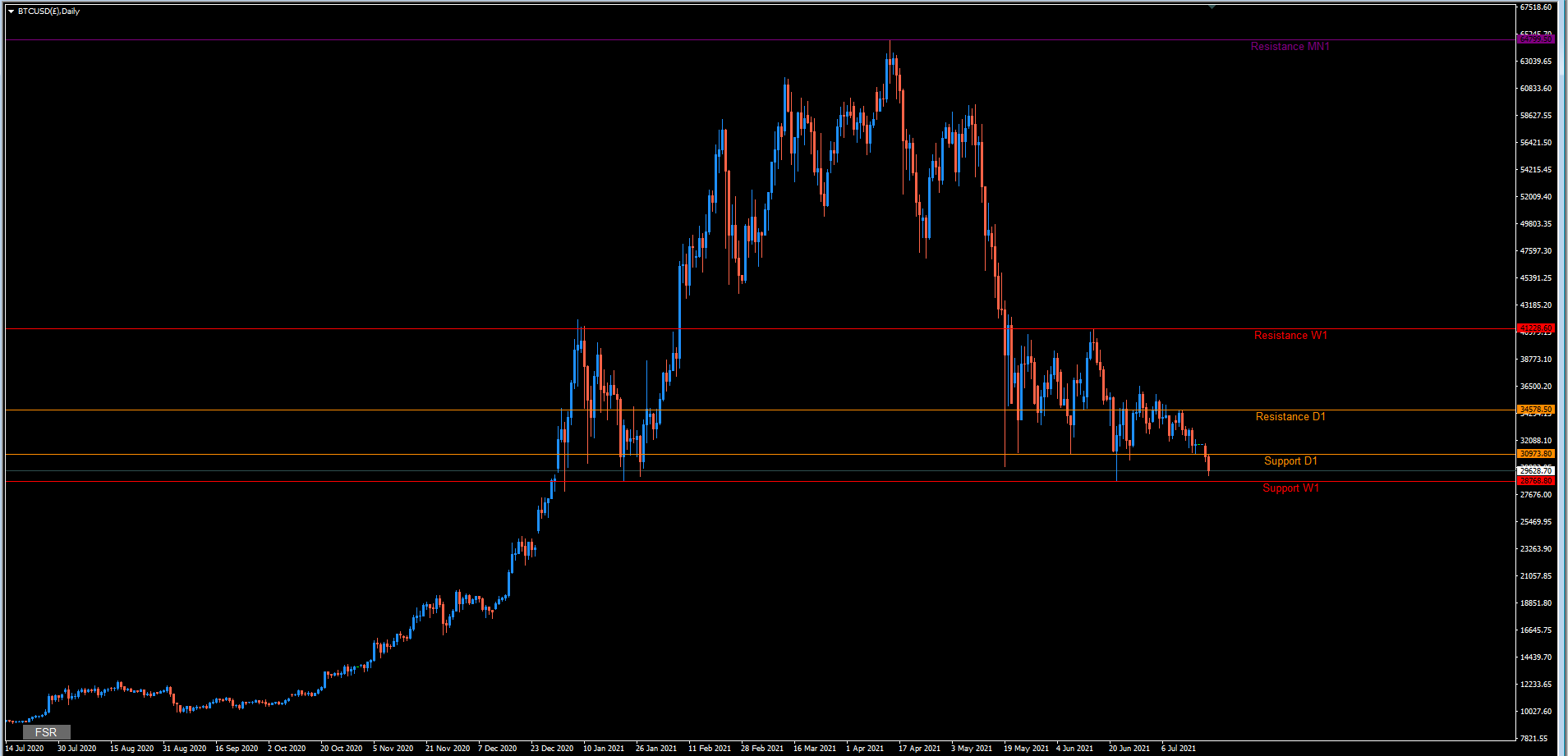 BTC at the last line in the sand, next up could be a drop to 24,000.