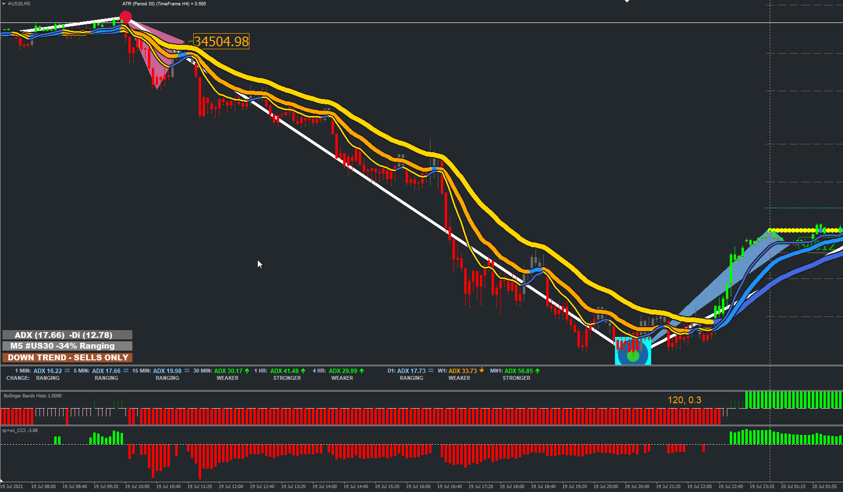 Below the Tipu CCI I was talking about earlier (free on mql5) and the Bollinger Bands histo giving similar signals