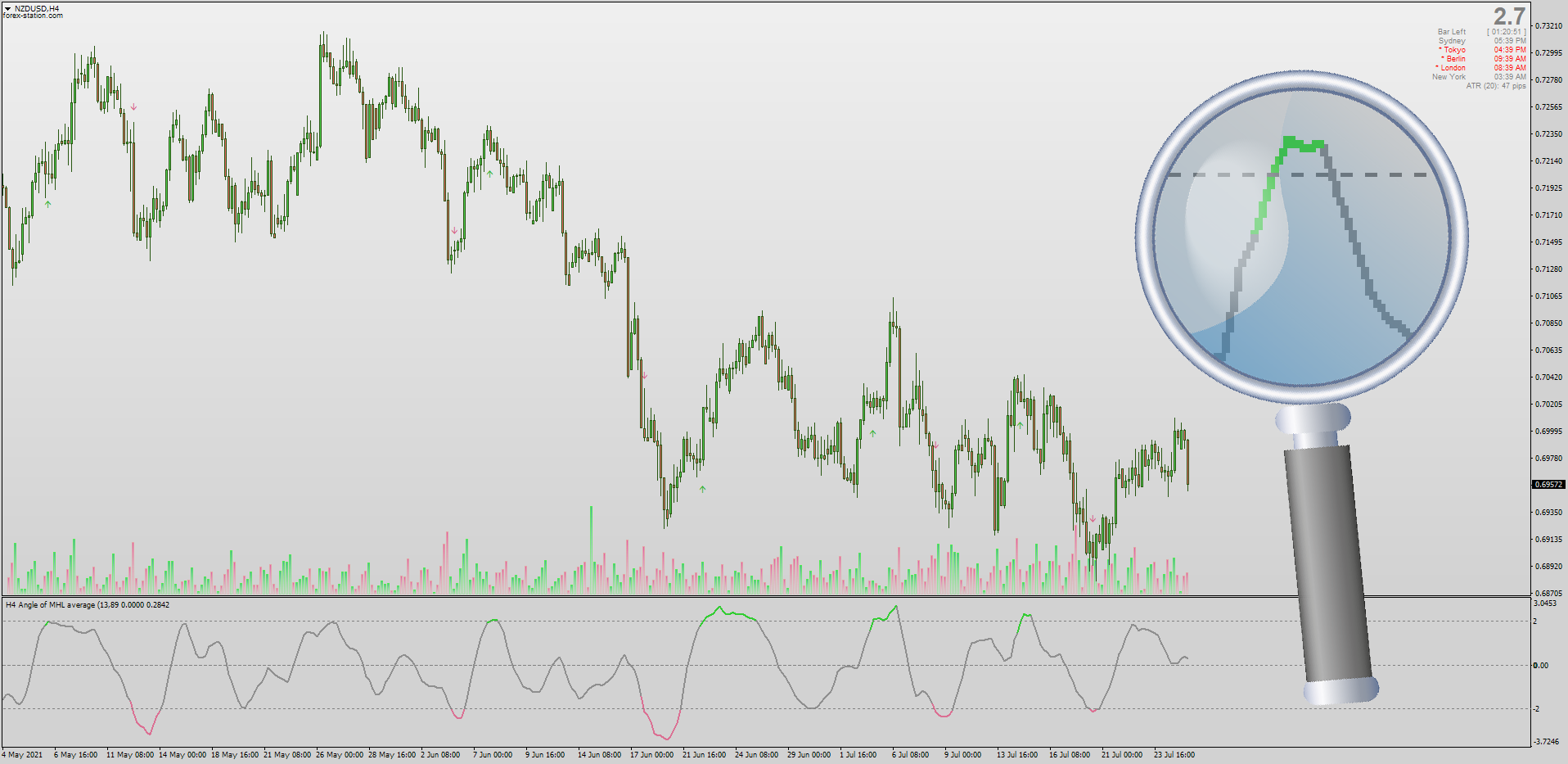 The Angle Of Averages by Mladen converts "time" into "pips" by using the ATR & by doing this it provides signal entries whenever it crosses the middle Zero or outside 2 & -2 lines. Mrtools's update makes this non-repainting scalping tool even stronger: viewtopic.php?p=1295440002#p1295440002