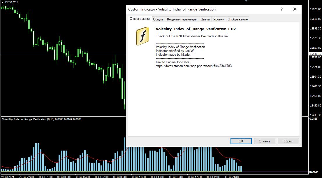 app.php/attach/file/3382221Hagbeth wrote: Sun Aug 01, 2021 2:35 am Hi I'm trying to find the original indicator in the screen shot below, called Volatility of Range Index made by Mladen but haven't been able to find it here. Do you know where it or similar Volatility of Index indicators can be found on the board here? The link in the indicator doesn't go to the right place. Many thanks.