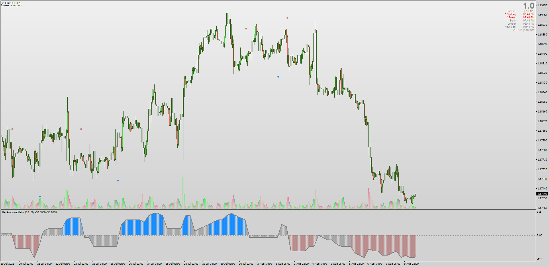 Our member Eddie posted this unique Aroon Oscillator which highlights 3 areas in price action (trending up + trending down & no trending zones) & Mrtools has now fixed this code to calculate properly, made it non-repainting & added AHTF MTF + Arrows: viewtopic.php?p=1295441103#p1295441103
