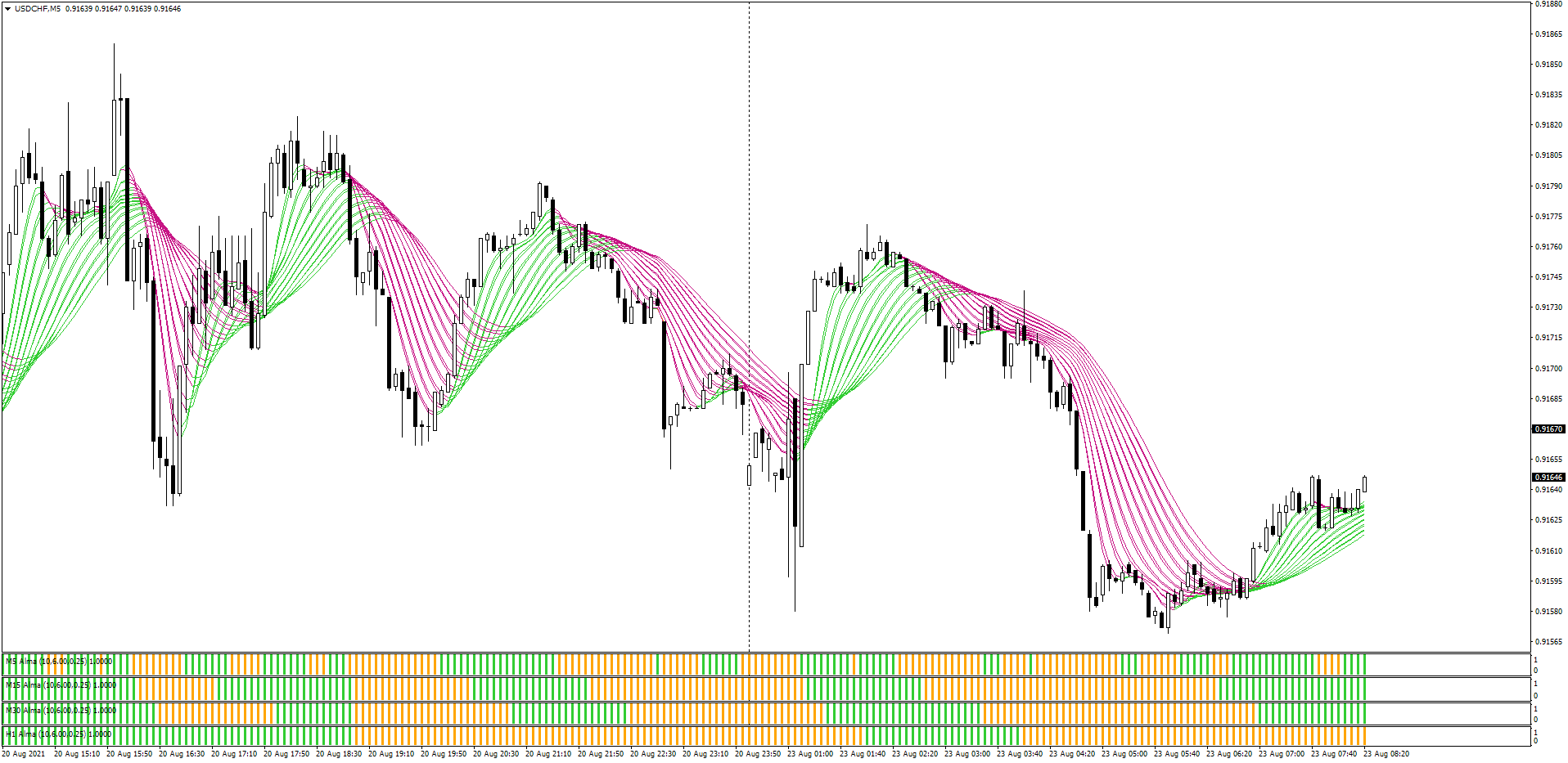 Moderator Banzai creates some of the best "Guppy/Rainbow" themed indicators + strategies & his latest template is the ALMA (Arnaud Legoux Moving Average) which removes small price fluctuations & provides an MTF system ideal for the 5M chart & up: viewtopic.php?p=1295442345#p1295442345