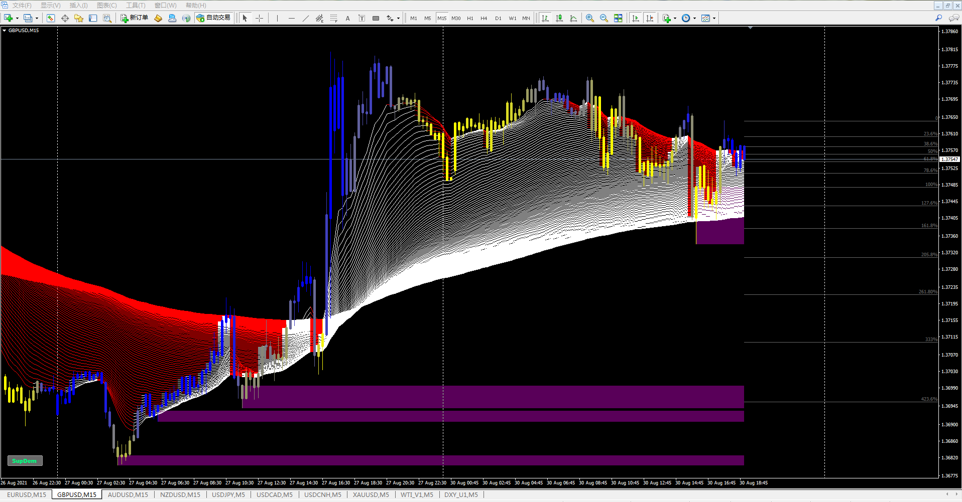 For example, the Averages rainbow indicator, just add a few indicators, long-term, mid-term, and short-term are all suitable.