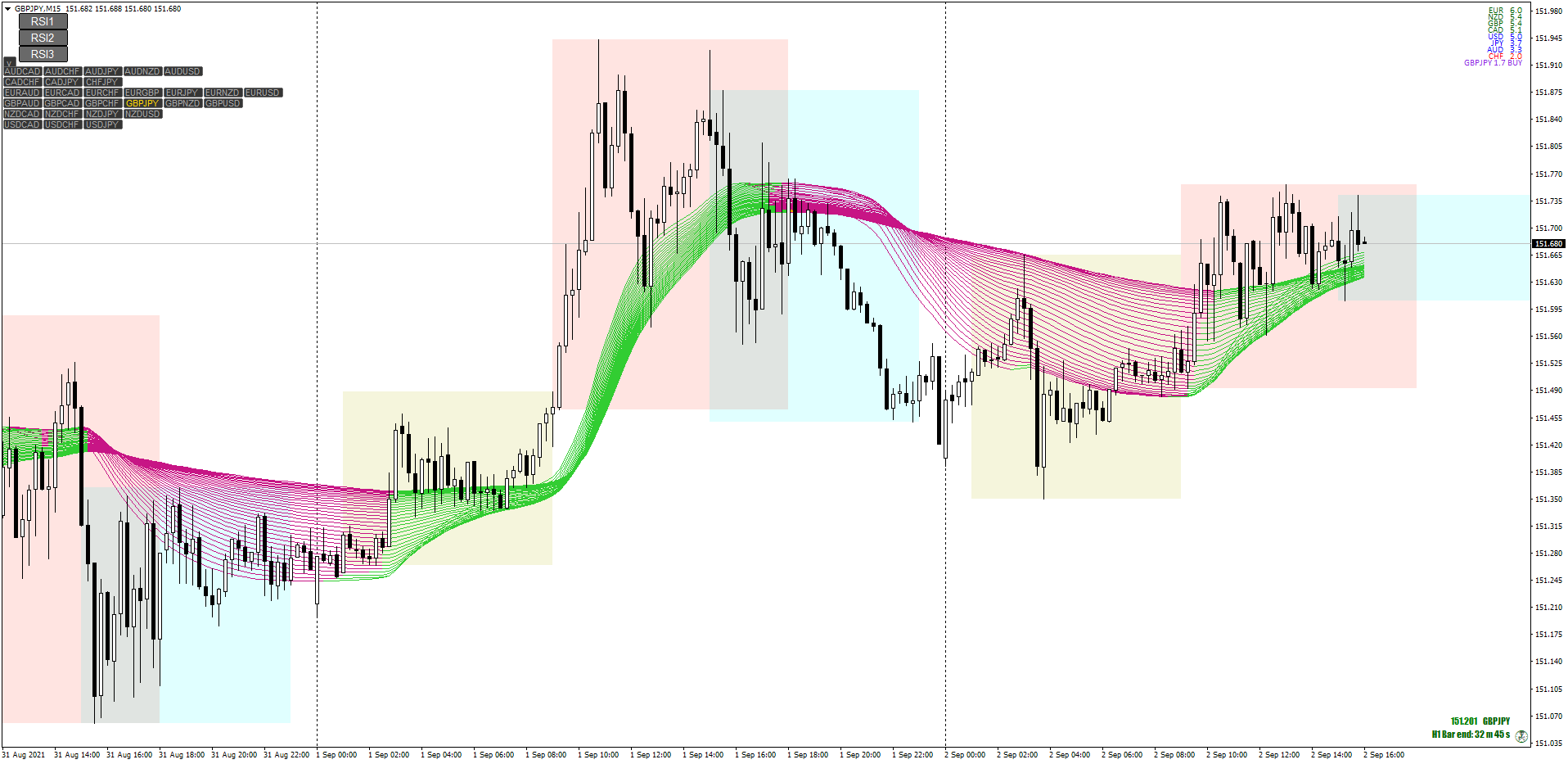 Banzai's range of Guppy Systems are well-thought out & he's now posted an "RSI Adaptive EMA Guppy" template which is built to work on all assets. It also comes with a unique set of "Button" toggles including a tool to quickly change pairs on the fly: viewtopic.php?p=1295443155#p1295443155