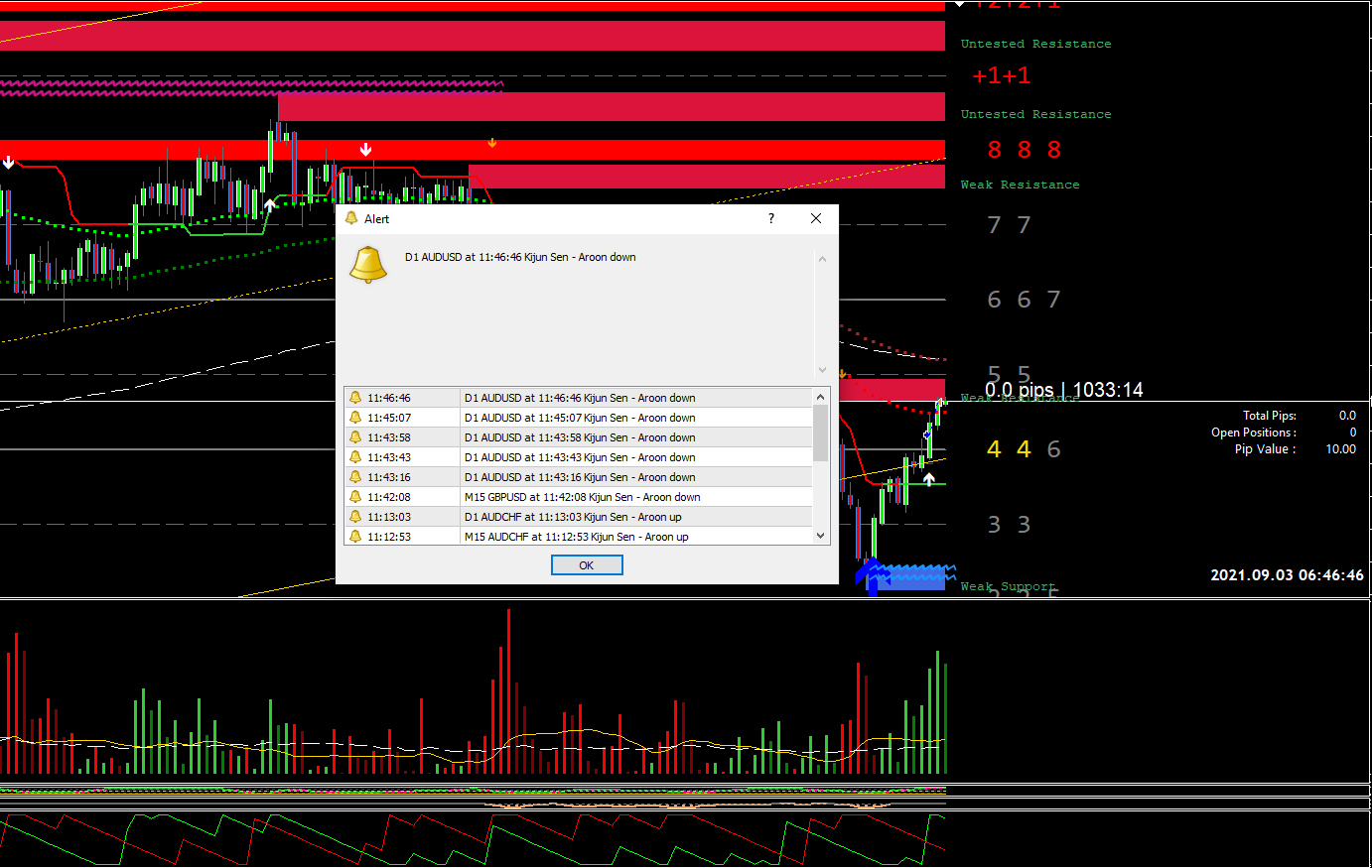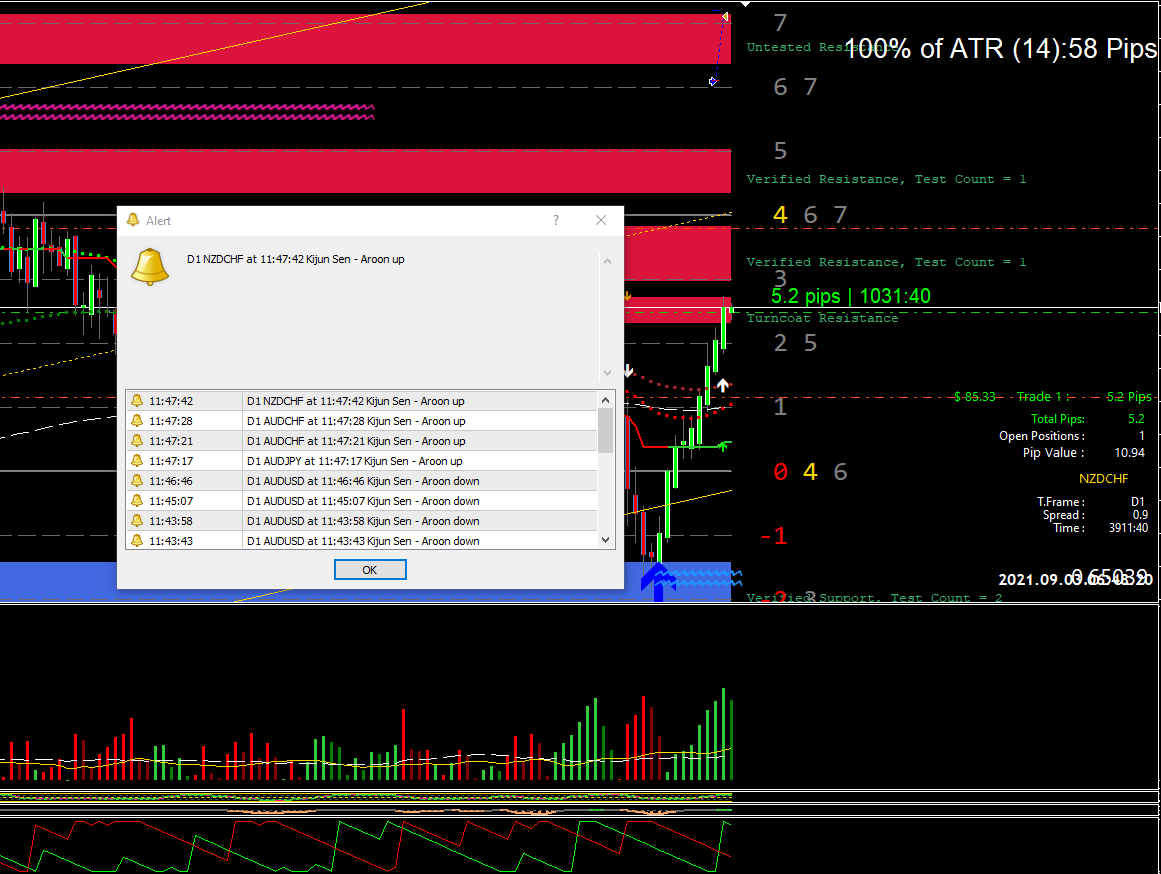 the AUDUSD is crossing up ( up trend ) but the notification shown Down but other pairs like NZDCHF it is fine may I know what issue please? Thank you!