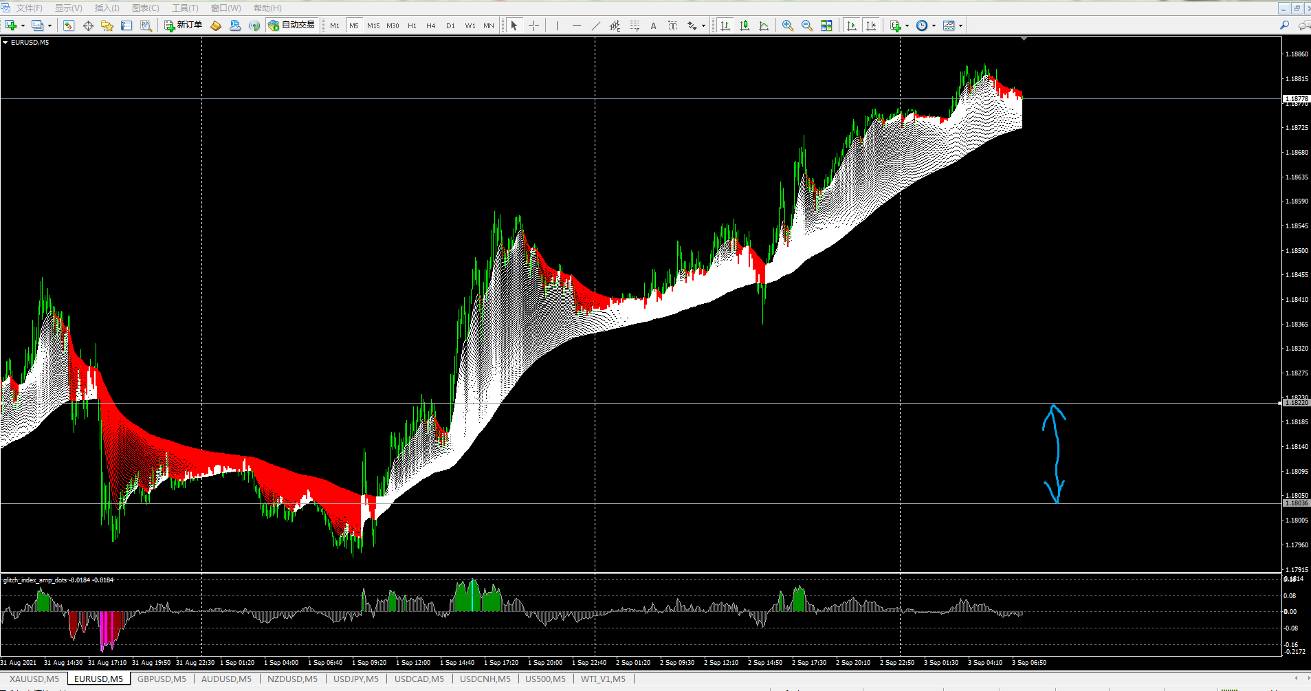 For rainbow and guppy indicators, I think it is necessary to conduct a "quantitative analysis" of MA divergence and convergence, that is, a "quantitative qualitative analysis" to determine whether the trend is reversed. I want to compare glitch_index_amp_dots indicators and map them to the technical indicator window "quantitative analysis". But it is not ideal.mrtools wrote: Fri Sep 03, 2021 4:21 am Just an observation, was testing dsl rsr with the pullback method, looks interesting. Not trying to go against the grain here, but so far found this combination could be profitable.