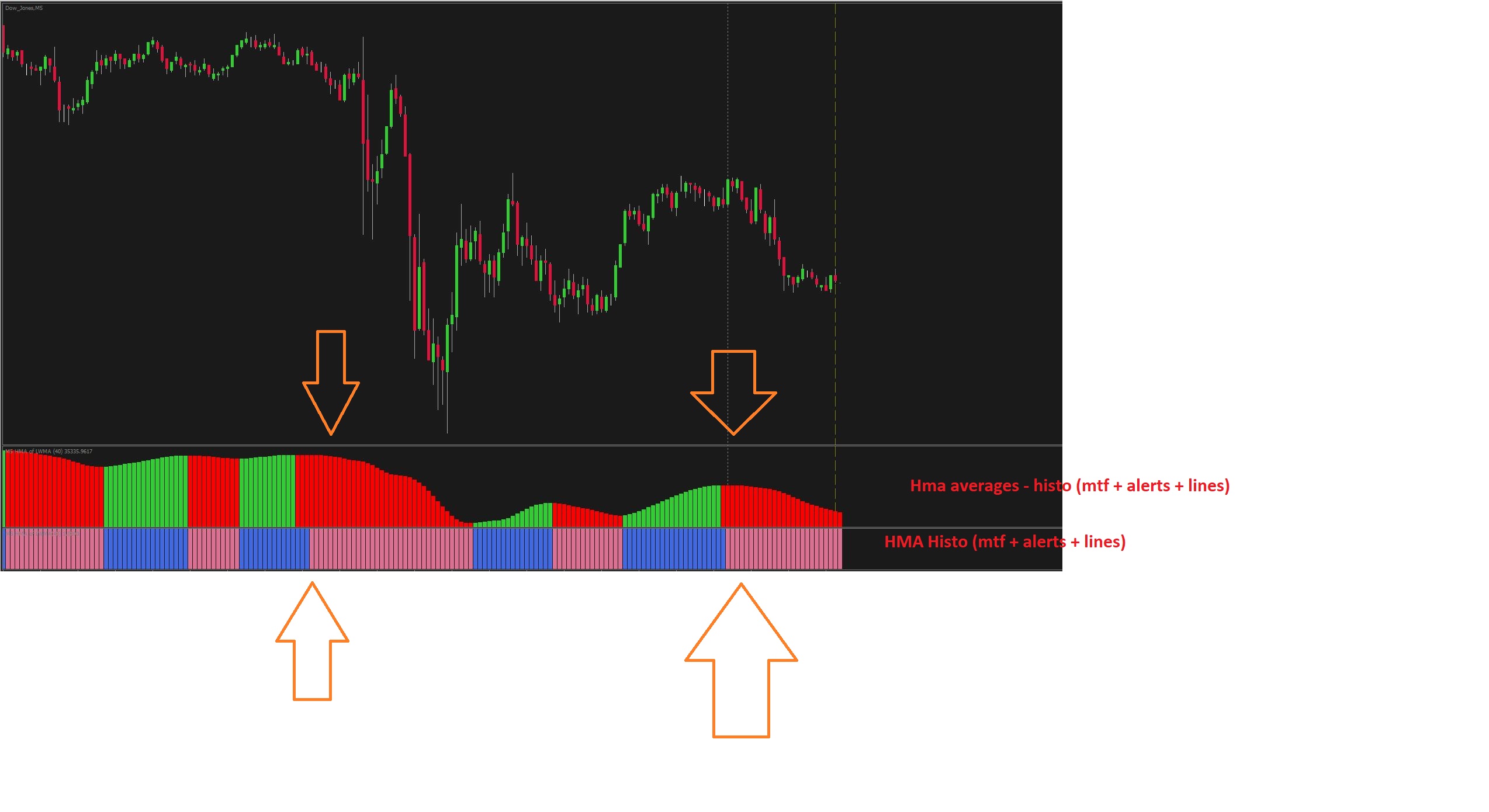 1) HMA Histo (mtf + alerts + lines) is showing inaccurate histo bars in 5 min timeframe in all symbols
