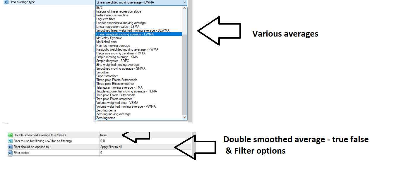 2) Also, this Indis misses : various averages & double smoothed average & filter options missing. Attached pic *
