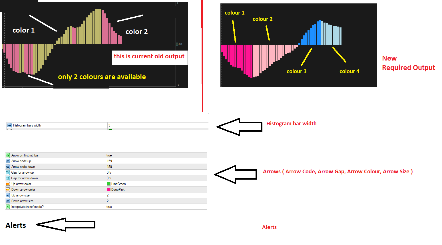1) Option for : 4 colours mountain histogram ( * currently only 2 colours available )
