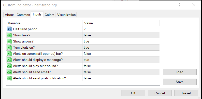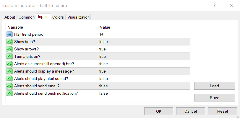 Half-Trend nrp settings ( we will use two one for short period and one for higher period )