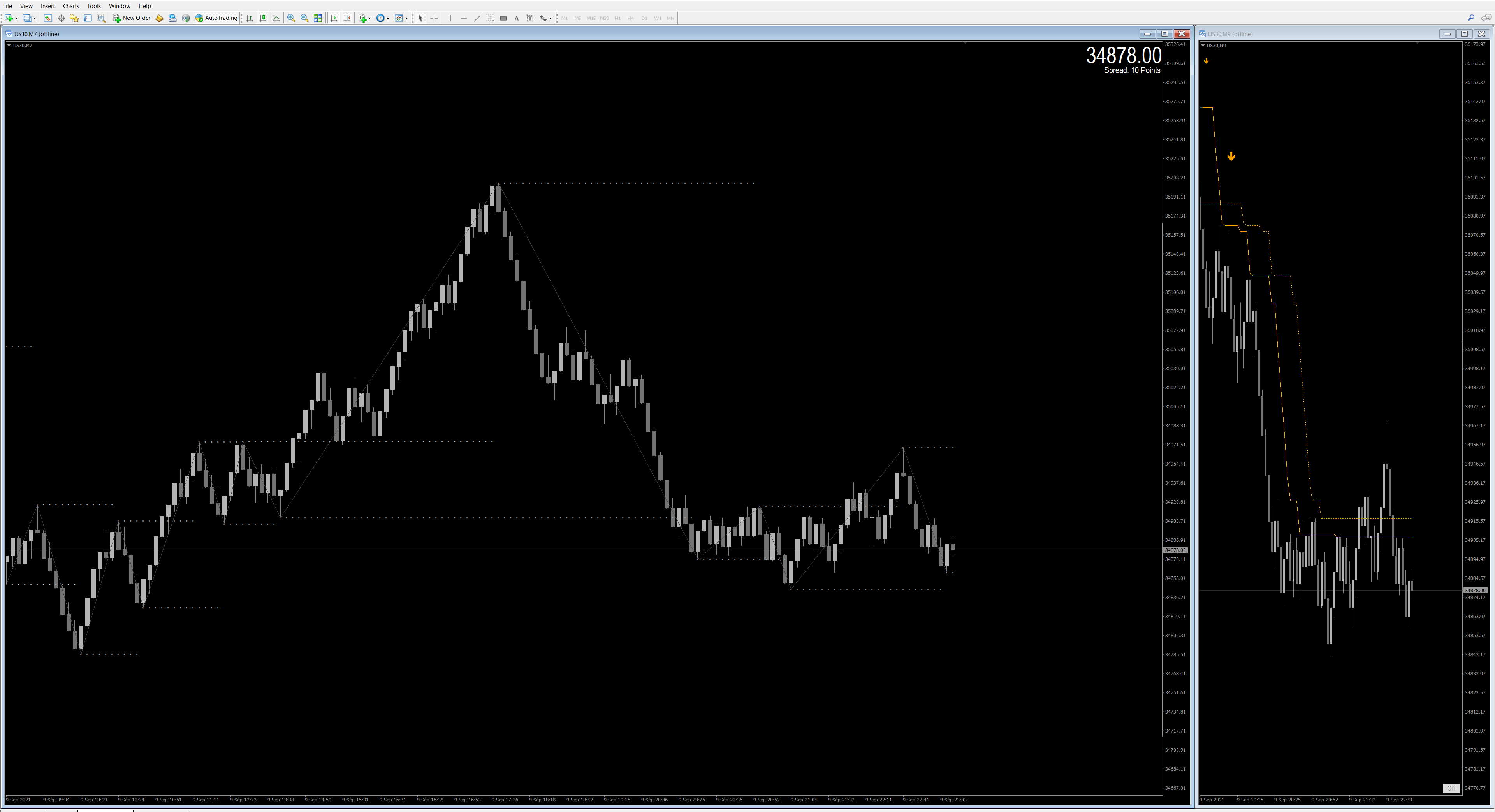 DOW - 25 - 30 index points per bar