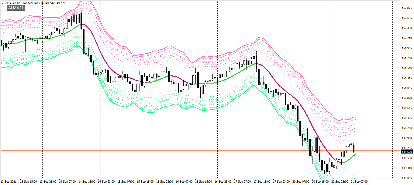 The Arnaud Legoux Moving Average calculation is based on a weighted sum using a specified time period, the Gaussian filter offset and a standard deviation. As the average is applied from left to right and right to left, it creates a combo line that the standard deviation sharpens.