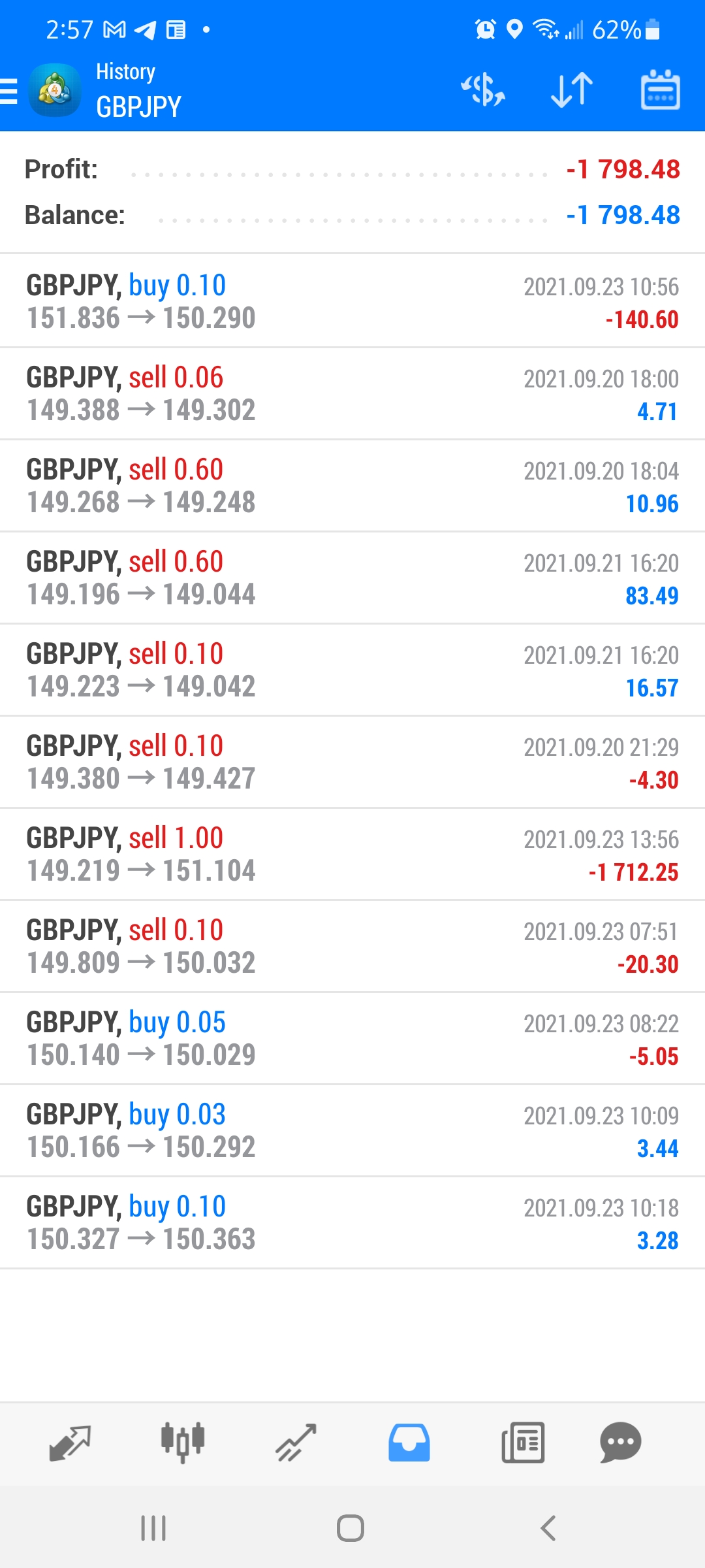Hi Friends..'m new here. This happened to me on Friday. Little bit recap about my Forex trading. I opened the account with 700 dollars 3 months ago and I made 1200 dollars. I sell GBPJPY one lot on Thursday. I was down 200 dollars in less than 5 minutes. And then 300 to 700 dollars down by Friday morning. But I didn't sell. By Friday afternoon when I checked MT4 on my phone again. My position auto sold with 1700 dollars in loss. Lesson here is Never bring emotions and Ego in Trading. I will try again on Monday. I just wanna tell someone to get it off of my chest. It's bothering me too much. Not the money but the feeling that why I didn't close the position when I was just 200 dollars down. Thank-you guys.