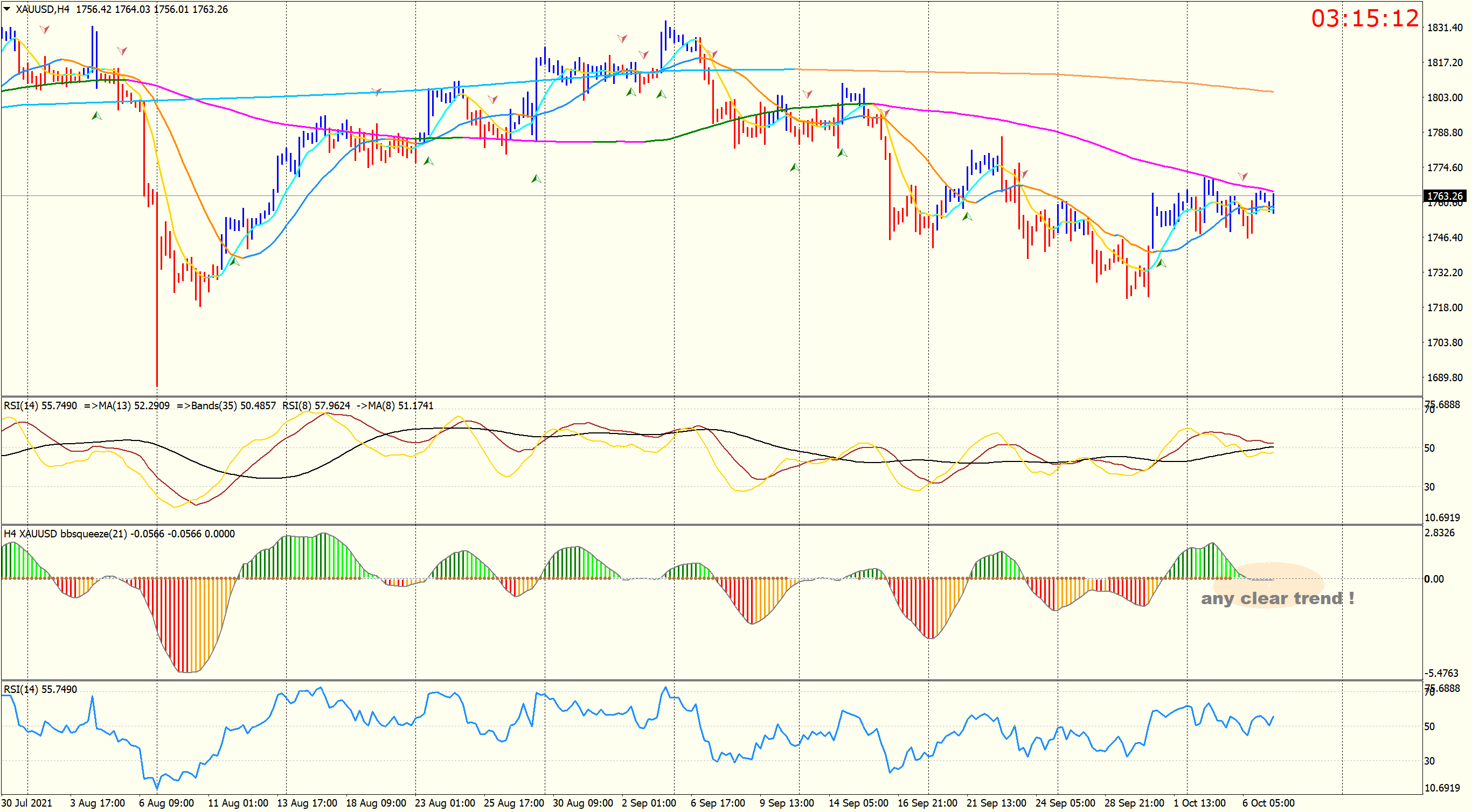 up to now any clear trend !macd & rsi wrote: Wed Oct 06, 2021 7:27 pm GOLD shows bearish trend , but wait for H4 bbsqueeze sell alarm !
