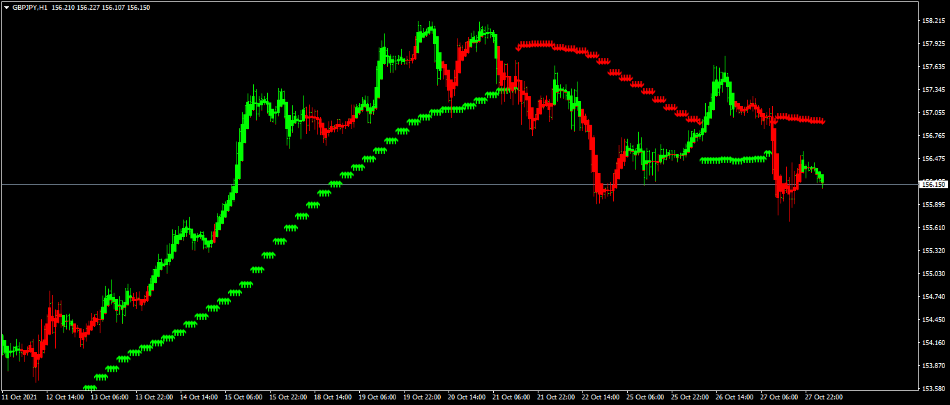 Look like "Trend Candles.mq4" and "Trend Arrows.mq4".