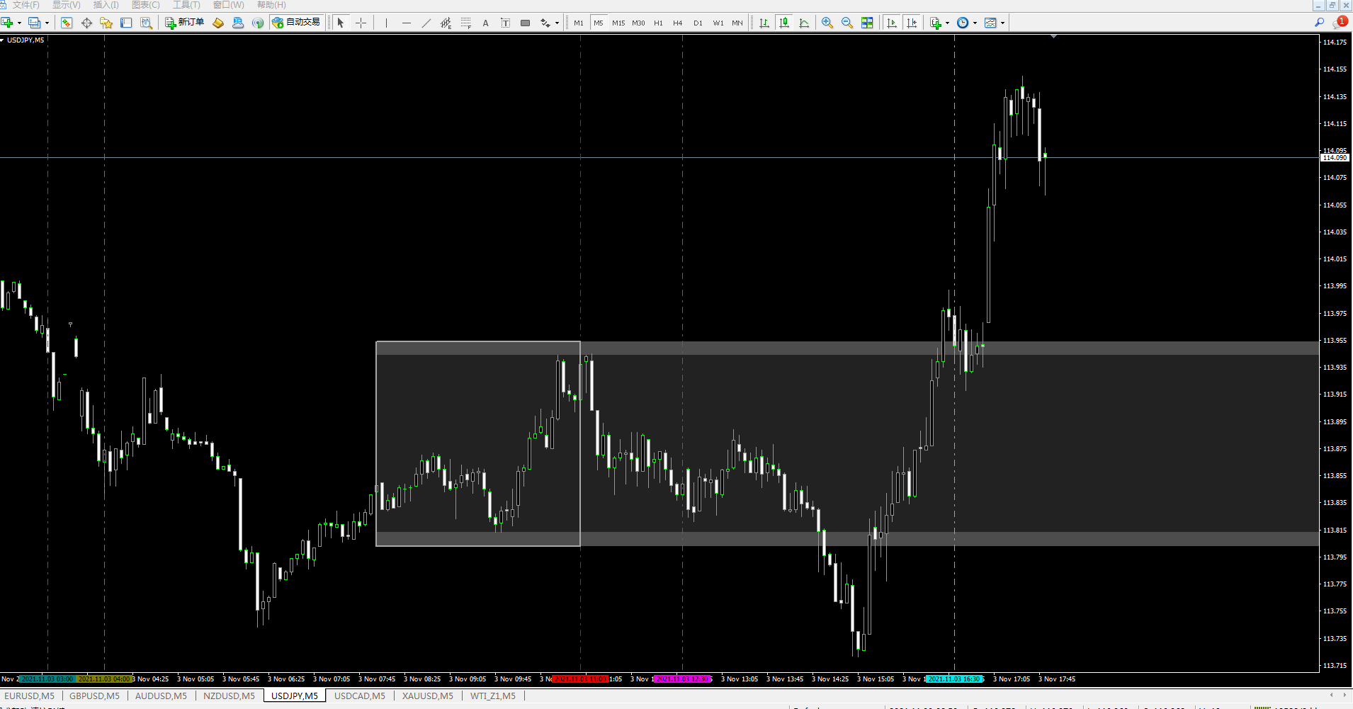 If possible, after the London market opens to (New York closes), the price (K-pillar) leaves the box and calls the alarm; the price (K-pillar) returns to the box to call the alarm.