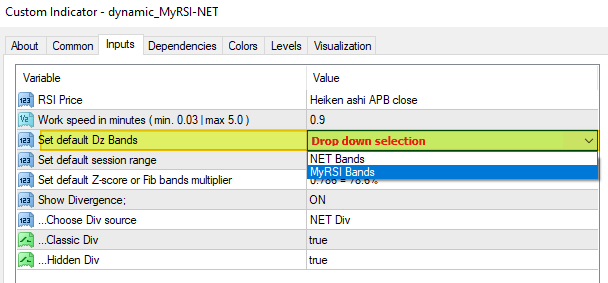 ─ Here comes an added feature wherein you can choose the default Dz Bands based on NET (as default) or MyRSI