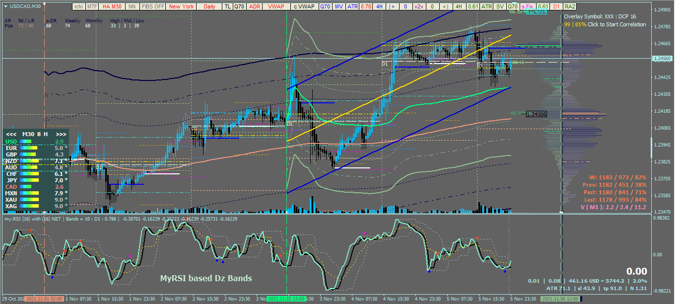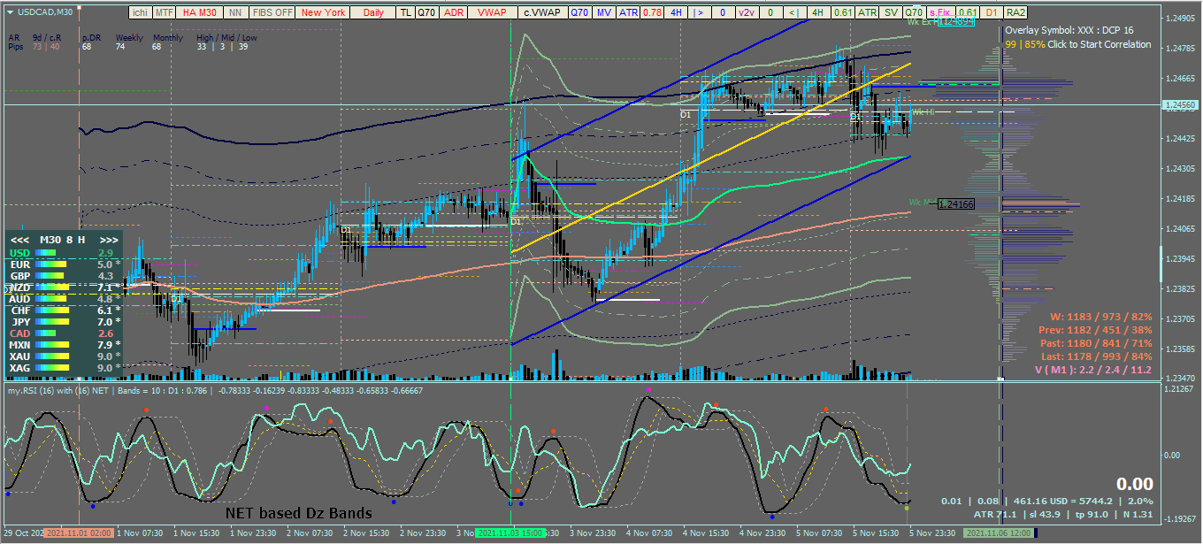 ─ PolyChromatic slope change based on NET or MyRSI Dz Bands with an option to mirror the polychrome colors to the Heiken Ashi Bars at the main chart window.