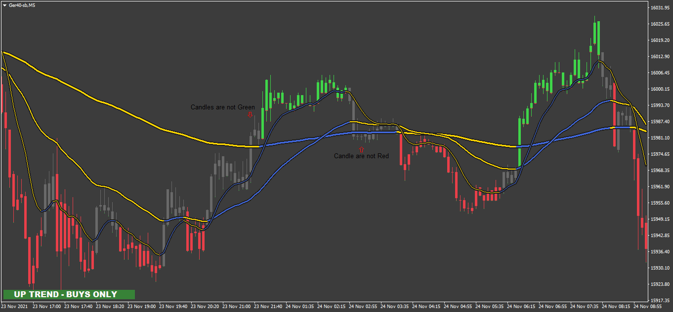 Just quick question if you don't mind. I can see candle doesn't turn green/red when it cross all MAs for some occasion. Actually it is good the way it is. Just curious and want to learn what's logic behind it. When does it turn Green/Red