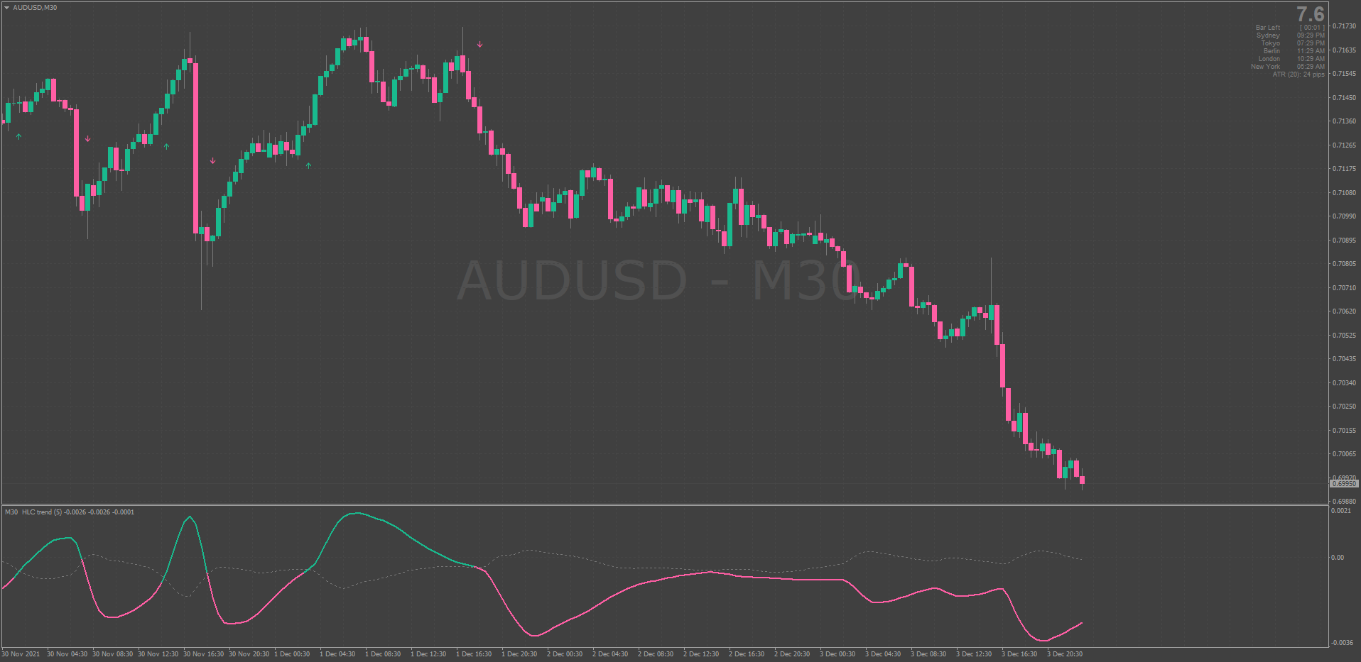 The HLC Trend (High-Low-Close) identifies trends based on a comparison of a High, Low, & Close moving averages. Originally created by Jason Hadley on TradingView, this code was ported to MT4 & now upgraded with Jurik Smoothing & Buttons by coder Kvak: viewtopic.php?p=1295451709#p1295451709