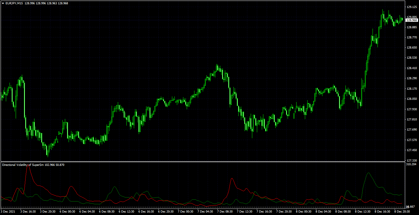 - The indicator generates two lines: one for the Long volatility (representing upward price movement) and another for the Short volatility (representing downward price movement).
