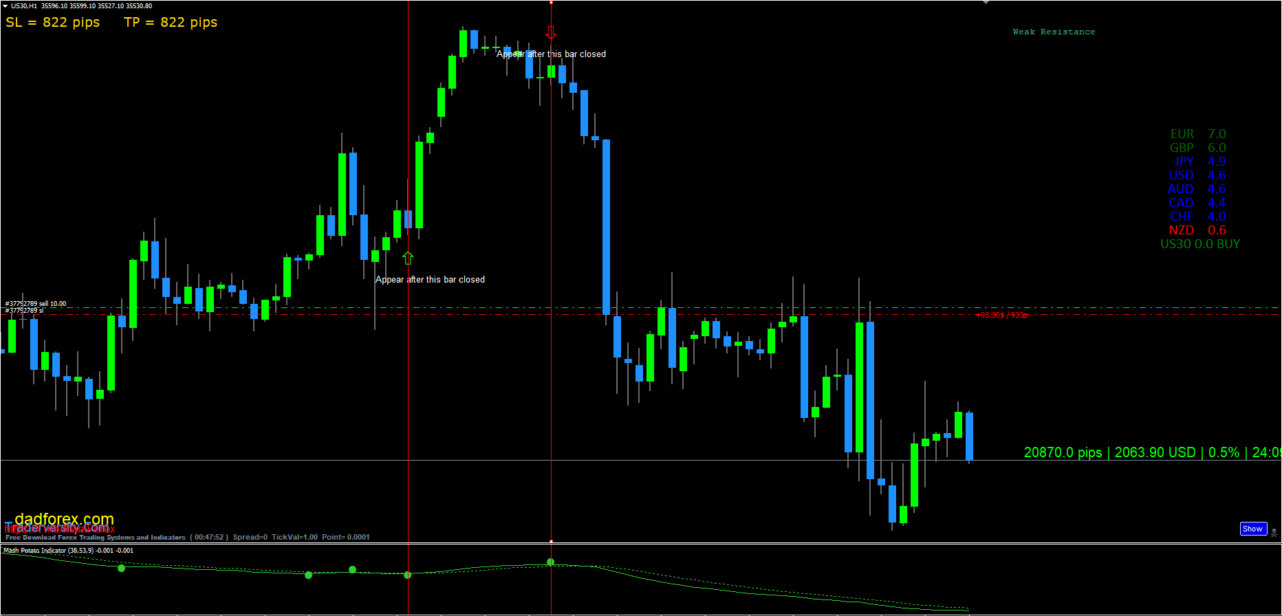 So it is impossible to make it appear the dots/arrow right after that bar closed? If after modified, it will cause the signal different with the original code?
