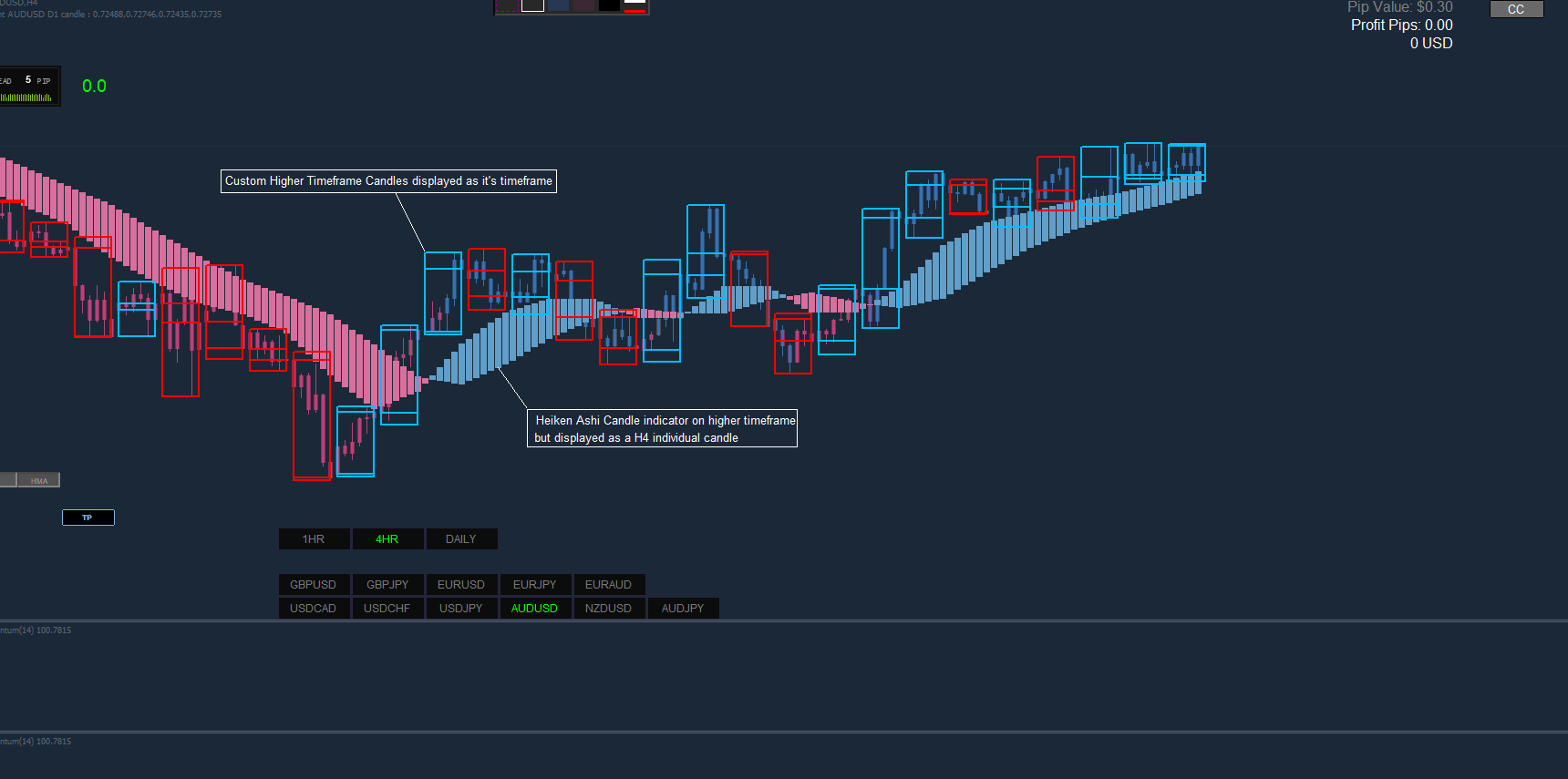 Is there a way to change the way this Heiken Ashi indicator displays it's higher timeframe candles.