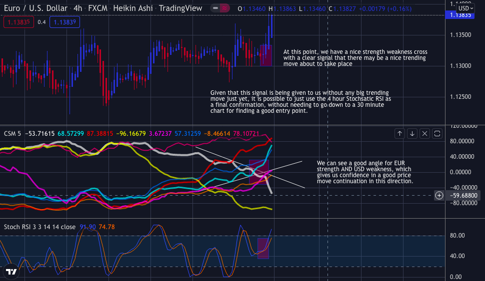 I had recently found a really great currency strength indicator on trading view and I have now put this into a very simple trading strategy. I now want to share this with the community here, as a way of giving back but also to ask experienced traders for any feedback and comments on this trading approach. Over the past few years, I have been trying to find a way to trade strength versus weakness because I have always felt that because the currency strength meter is a fundamental indicator, it can help to give us a good indication about the future direction of price & trending moves. I have tried many times to use the CCFp currency strength indicator on MT4 (as well as other currency strength indicators offered on forex-station) but I was never really able to use these indicators to give me the result i was looking for. But now that I have found this new indicator on trading view, it seems like (finally) my strategy may be finally starting to come together.
