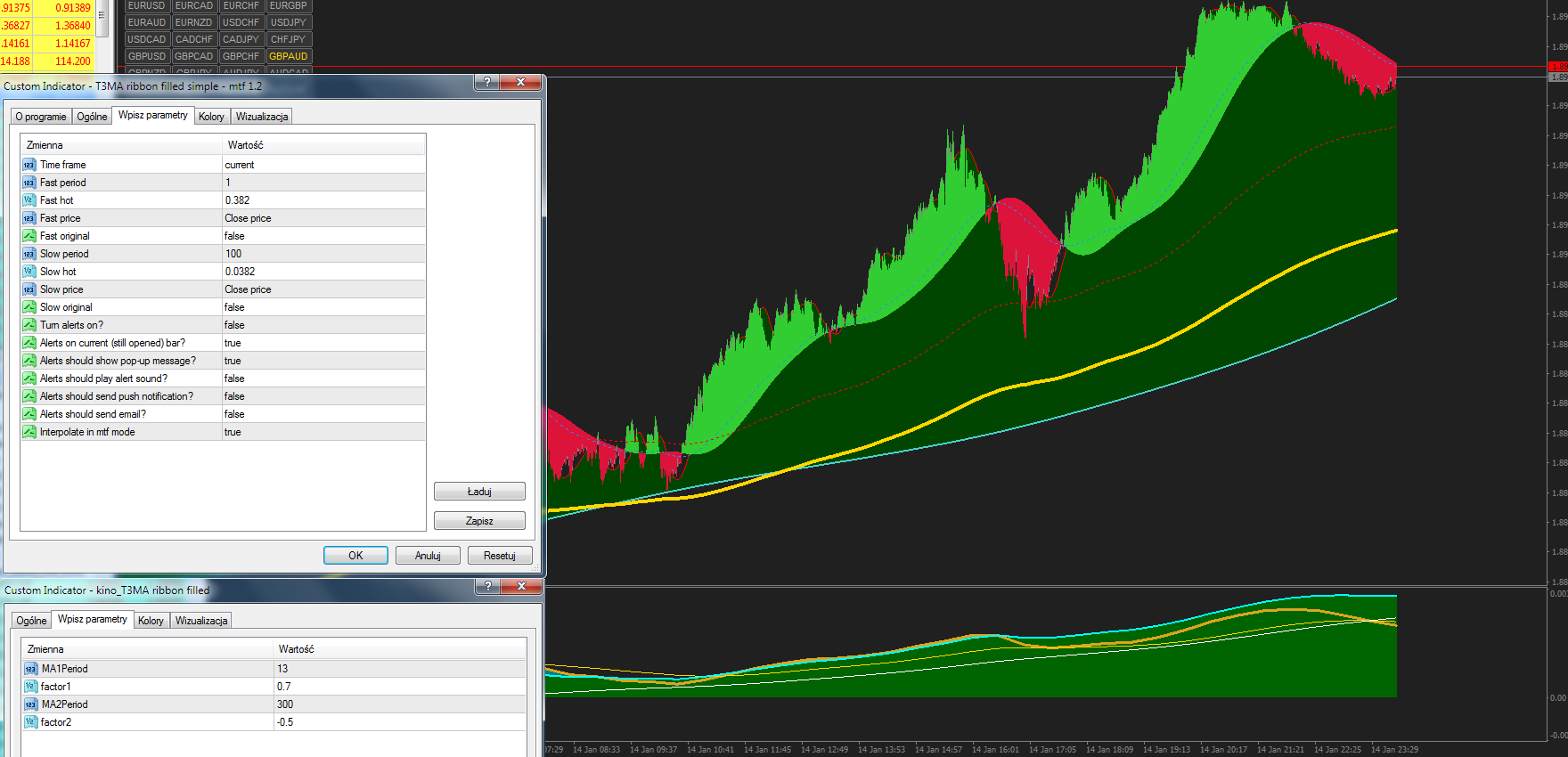 ok, after playing with the indicators and their settings for some time, I came to something similar. But I'm not sure if it's the same ... (settings for M1 scalp)
