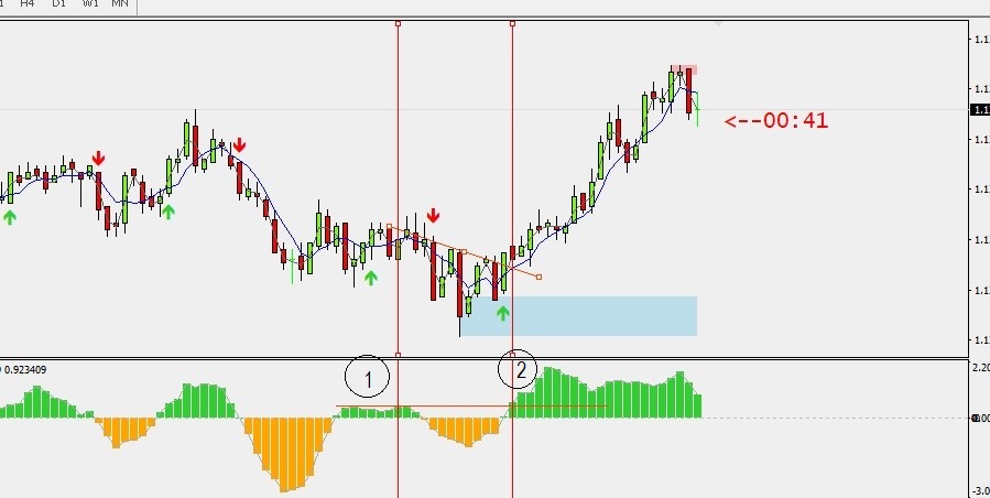 if the Previous high green bar (snap 1 marked) breaks next current green bar (snap 2)