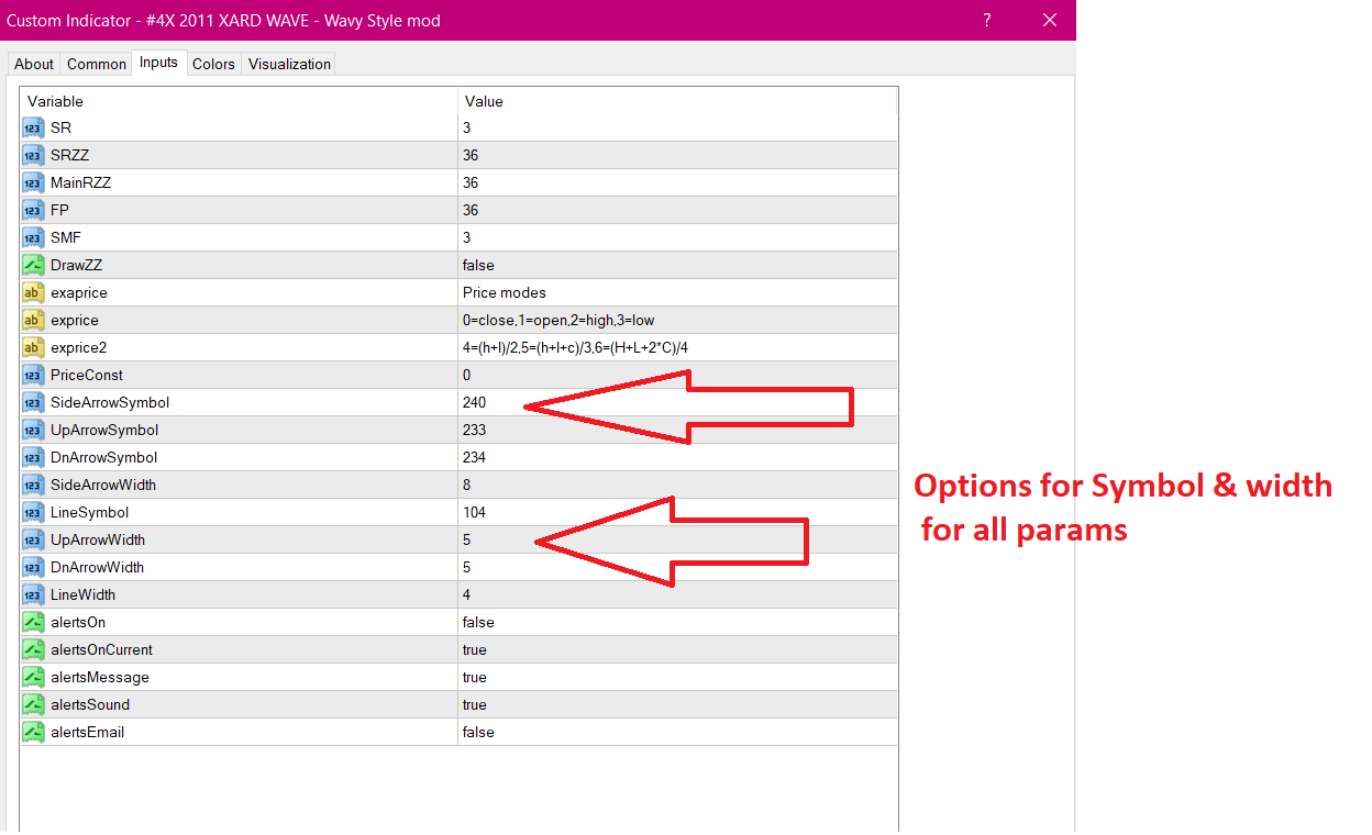 Reason for request : This Indi has options for symbols and width for all params. --- indi attachment pic - for ref *