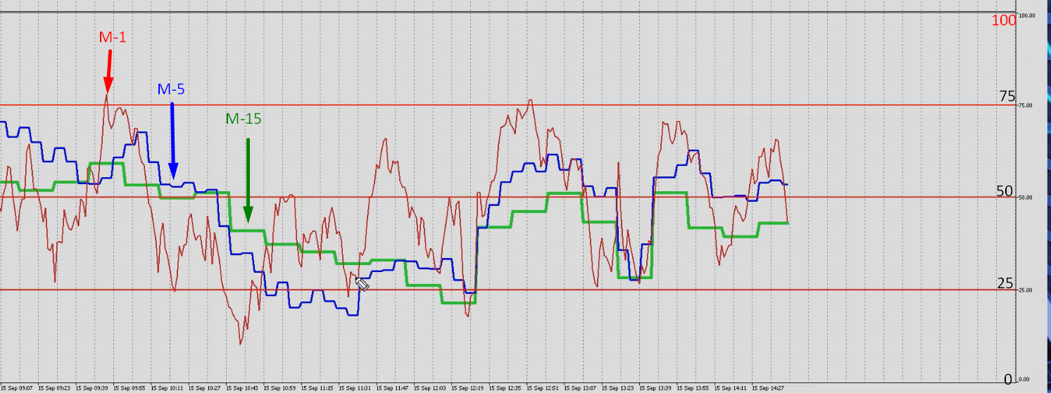 Hey! Interested in a trend indicator as in the screenshot. Is it possible or not to program an analogue of this indicator? Oscillator is a counter of deviation relative to the average value. The indicator monitors three time frames (M1 red line, M5 blue line, M15 green line).