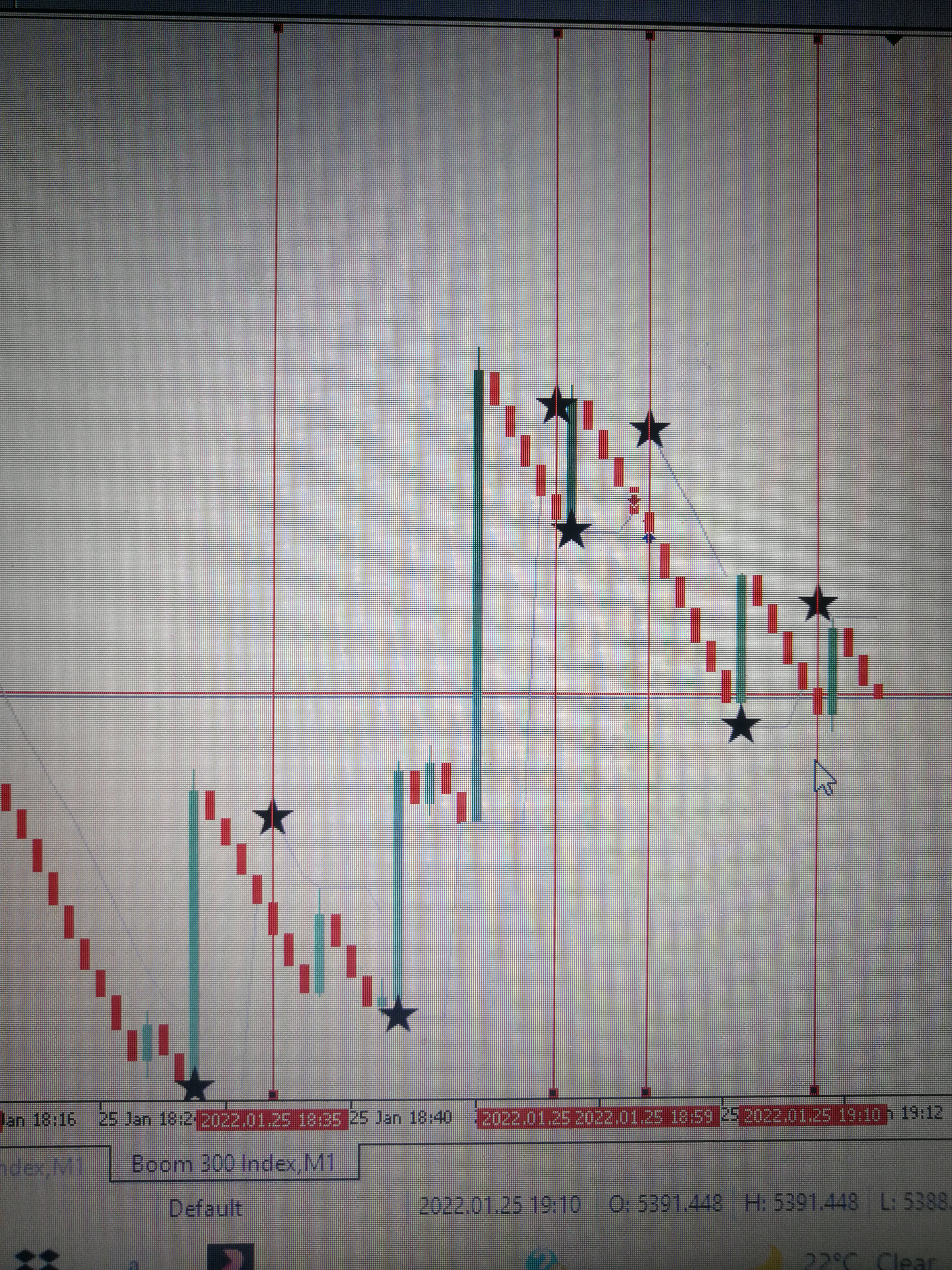 on the picture I place a vertical line on the signals.. Thts how EA should trade a trade just only 1 candle when the candle closes the ea should close 1 minute time frame.Gabriel wrote: Wed Jan 26, 2022 7:34 am Hello Mrtools... I have an idea that I dnt know if it would be of any help for people that are trading Boom and Crash... the indicator is called (Non repaint star Alternative)... the indicator is more like a trend with signals that do not repaint so I was wondering if it's possible to make it (Auto Trade) EA... so the rule is basically trading just only 1 tick... example... with boom because it spikes up the EA should only take a trade for bearish tick when the signals appears... n only 1 tick when the signal appears n it should close when the candle closes in 1 minute... and for crash because it spikes down it only trades a bullish tick when the signal appears 1 minute candle then it closes... I dnt know if it's possible... and again I do not know if the indicator has a source code... if its possible may you please make it an EA or if you have a similar indicator like how I explained the rules... please... I will send the picture for if you have a similer indicator that has a source code to make it an ea... I will also attache the indicator.