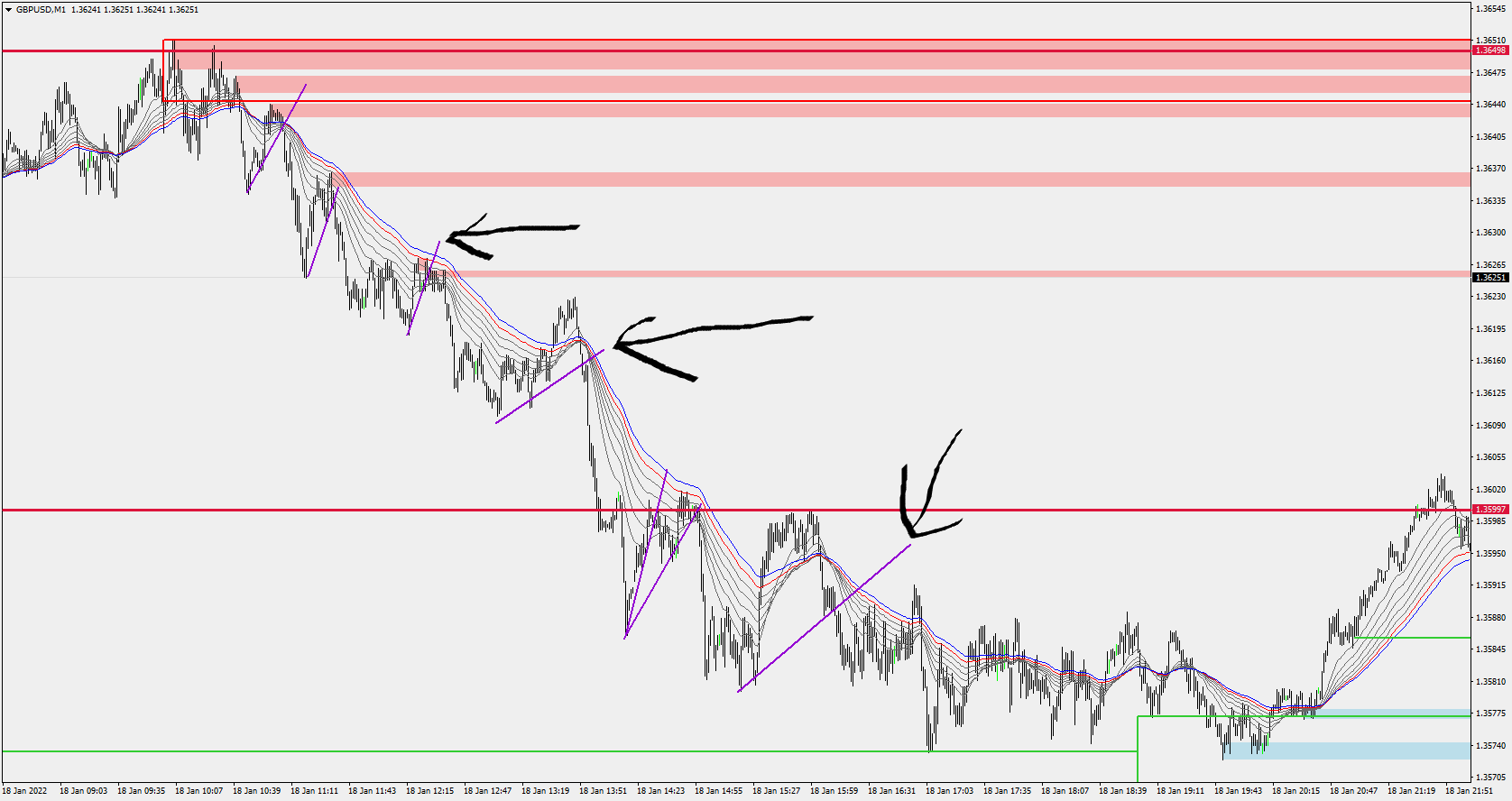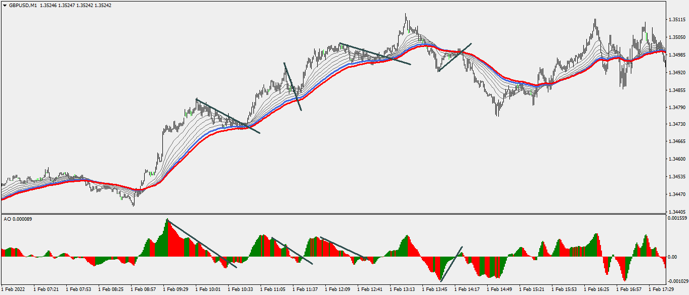 the indicator is based on a combination =pullbacks of the AO (Bill Williams histogram) with PA trendlines. it is copyrighted but you can plot it by yourself. See gbpusd today....hope this helps best M.