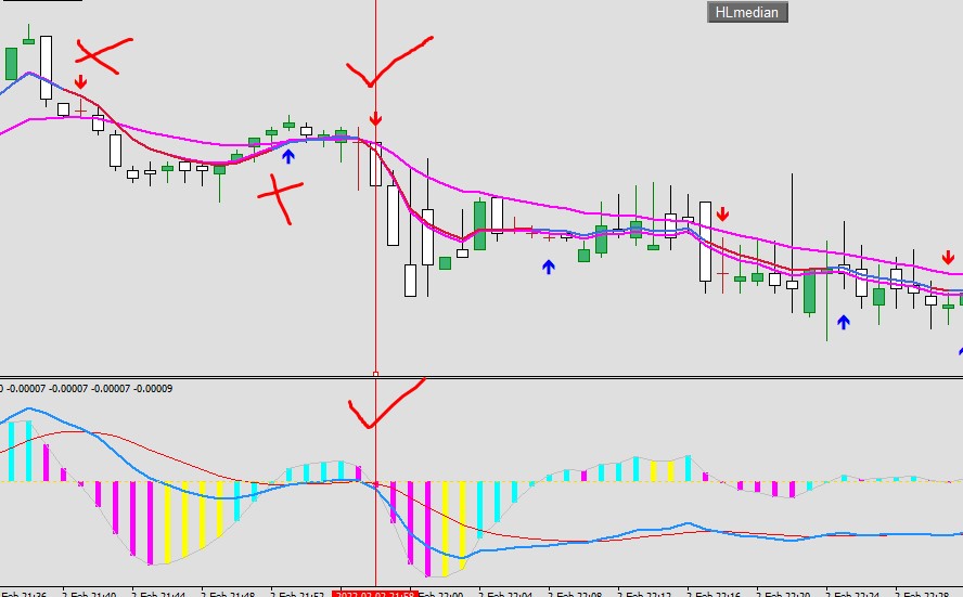 if you dont mind , kindly filter the attached indicator macd arrows based on ema 6 crosses ema 20 bar alinged. see my marked arrow ..