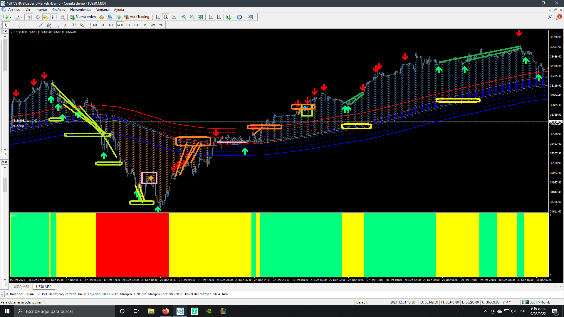Hello everyone, I was a bit hesitant on asking for a favor on my first post but I think we could all benefit from this system, it is based off 3 indicators, 2 for trend and the other for entries, when the arrows appear bellow the middle range for shorts the stop loss should be placed above the bands, when the arrows appear above the middle range for longs the stop loss should be bellow the bands, if the arrows appear outside of the bands for shorts or longs the stop loss should be placed above or bellow price according to the ATR, all profits should be taken when an opposite arrow appears, trend is dictated by the middle range changing color.