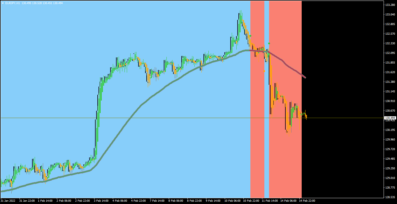And if both MA's are conflicting with a buy & sell, then a neutral color will appear for the chart background.