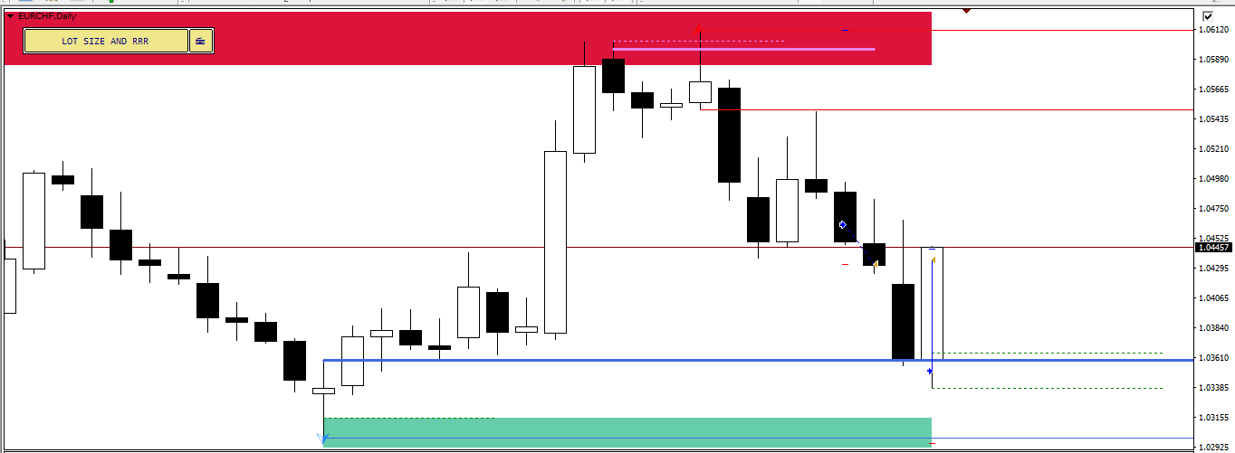 I hope most of you have been exploring different aspects of the Fractal Order Blocks...... It works on whatever time frame you want to use it.... I suggested using a combination of Daily and Hourly. Hope you enjoy the following EURCHF Daily Chart... Price dipped all the way into the OB, Formed an Hourly block, then took off... Reward to risk ratio is not as great as on 15Minutes Trading, but for many like me who can't be on their trading desks in the key hours, there is plenty to take home.... The price has not yet exhausted so there is still more room to the upside.......But having enough it is never a bad thing to take the easy exit...