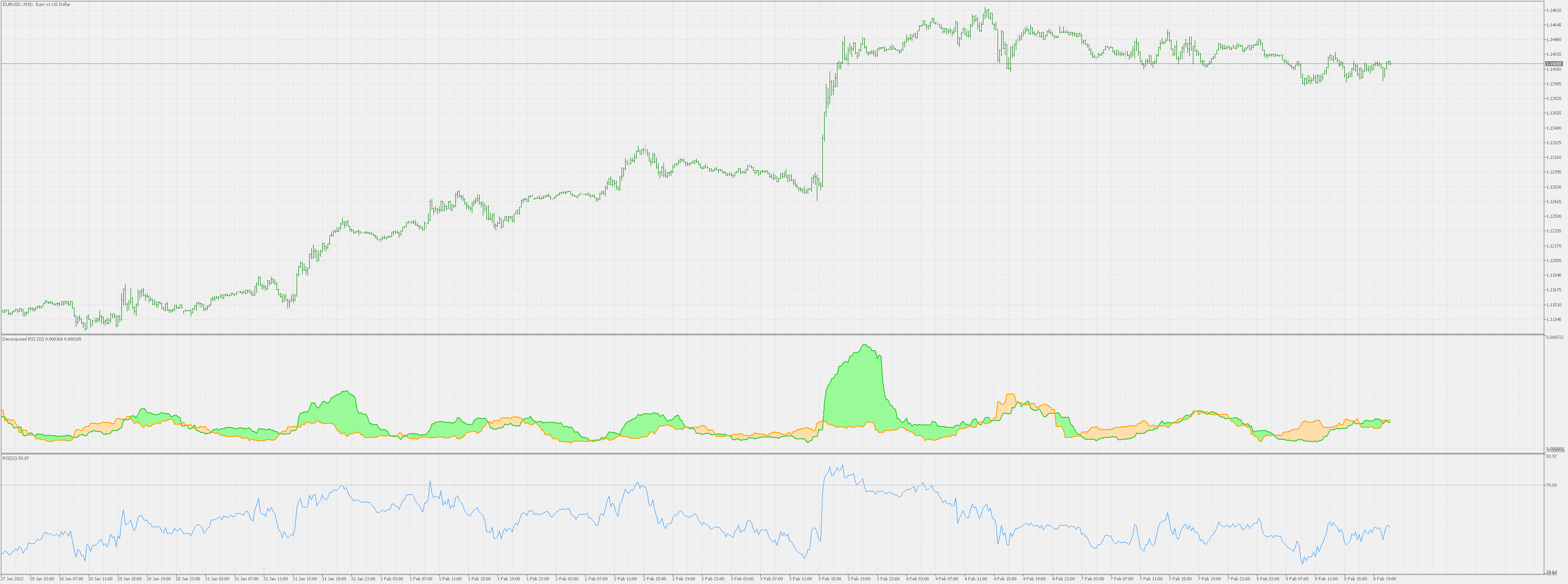 RSI in different form : decomposed form. It might be a bit easier to follow the possible RSI signals this way - see the example and how this indicator compares to RSI (and it is RSI )