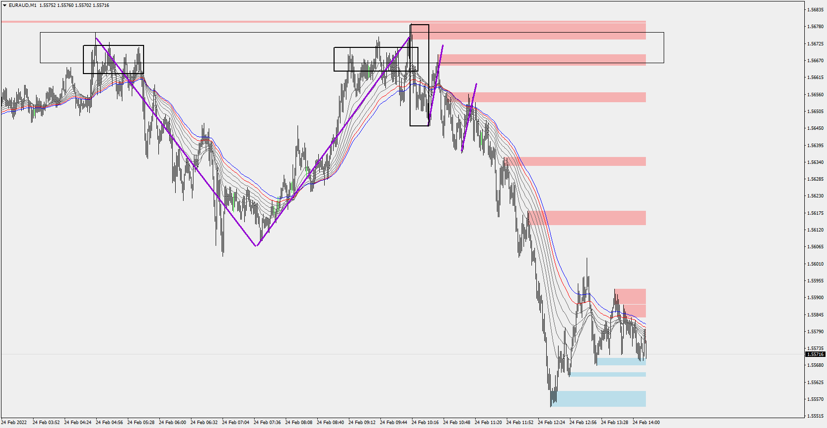 high probability setup. 1H SD zone, 2 top(= reversal pattern heads up), price chopping at the 2nd top, impulse down, MA's changing to short, wait for the retrace. This is what we call 'confluence' when several signs align.