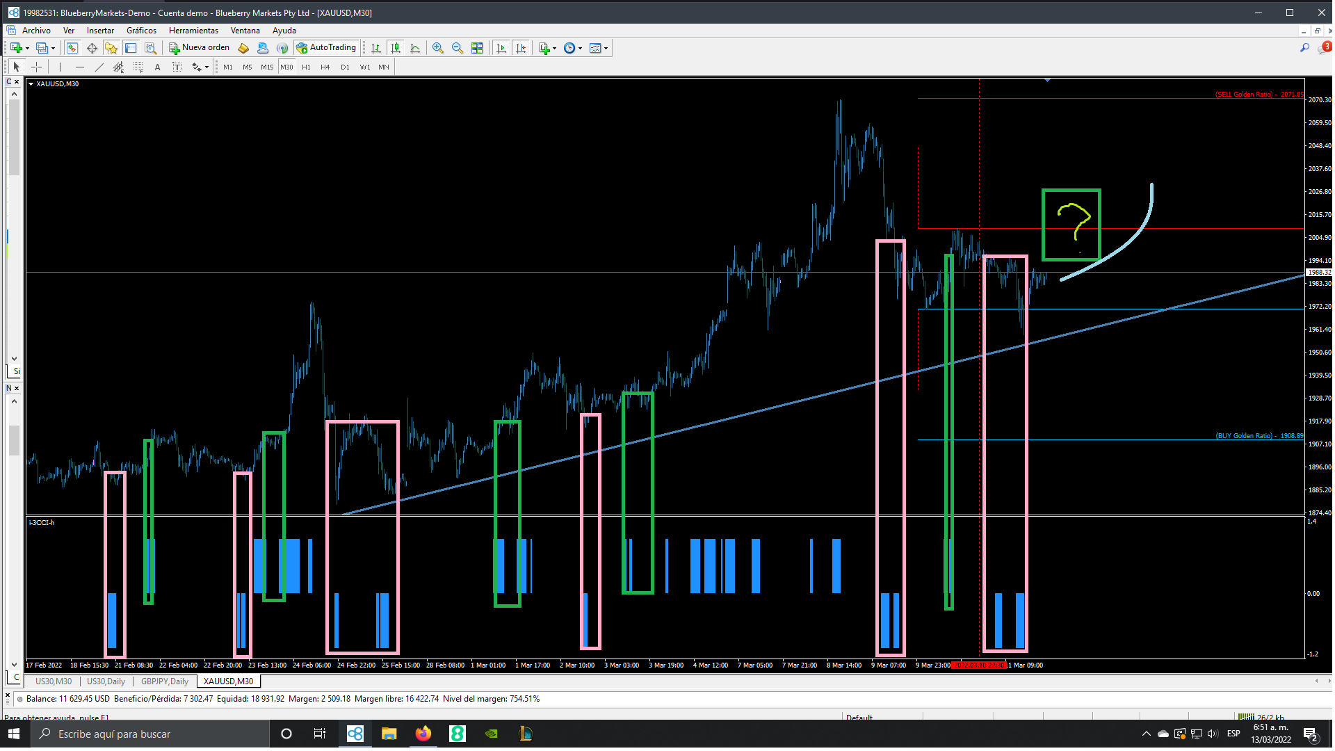 Could a button be added to this indicator, as well as arrows, and alarms please? I believe it can be very useful for finding zones of pullback and entries, it combines the signals of two different timeframes, in the picture I have it with 30min as the first timeframe and 240min as the second.