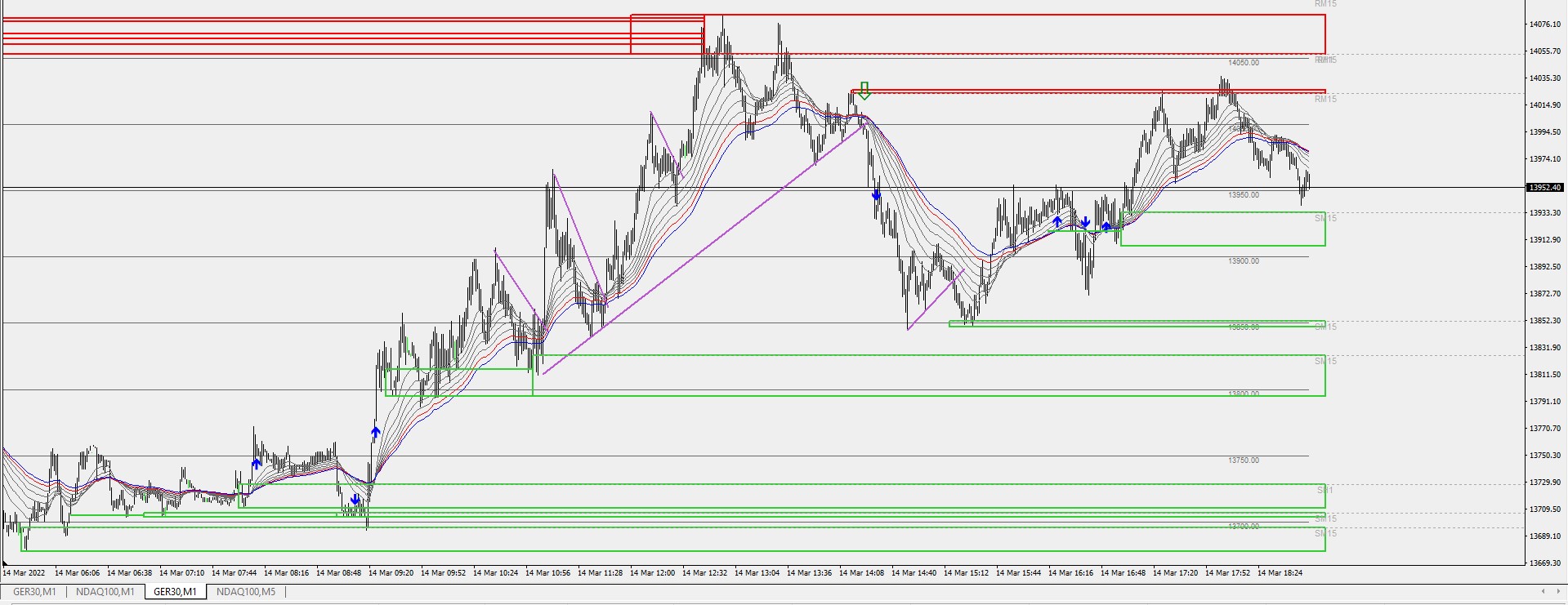 Its the Dax from today. The blue arrows are where the 70 and 80 cross and the green arrow is where I think the reversal is confirmed. Although still a good trade, if I'd have waited until the first clear pullback following the 70/80 cross I'd miss most of the move.
