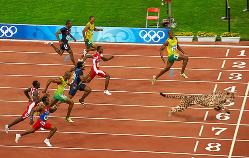 This brave trans-species athlete just smashed Usain Bolt’s world record in the 100m. So thrilled to see that the cheetah won.