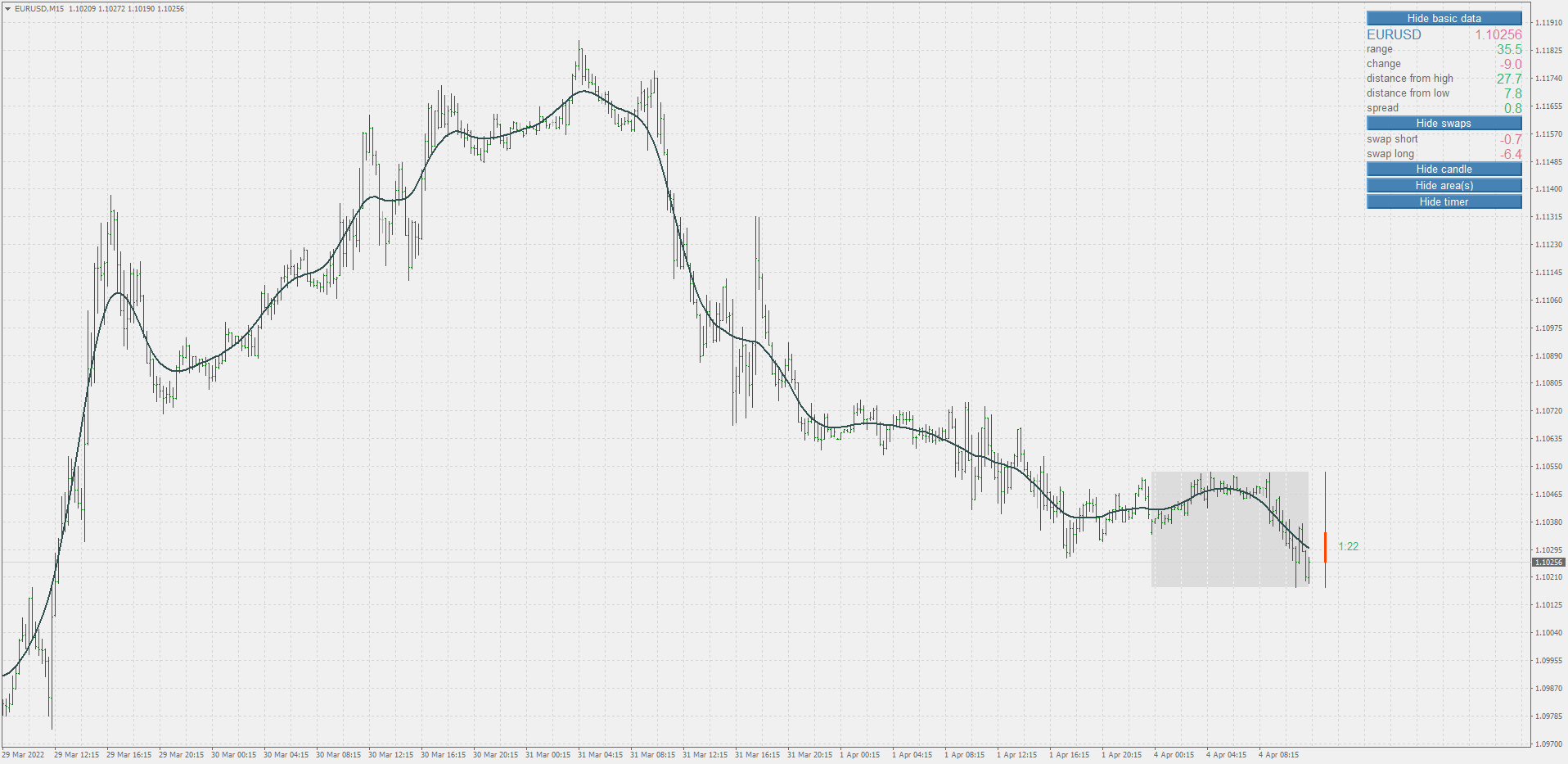 In order to avoid that missing data, people have found out that it might be extrapolated (the missing data) and that is what is usually used as centered triangular moving average : TMA that is shifted by half length to the left and the missing data is extrapolated in a certain way. Here is how the usual centered TMA looks like :The gap from the right is filled in and it all looks just fine. Except that there is no 100% exact way of extrapolating data. So, that extrapolated gap is a subject of changes no matter what extrapolation method one uses (otherwise I would be drinking coffee with Warren Buffett in the morning and not in my kitchen).