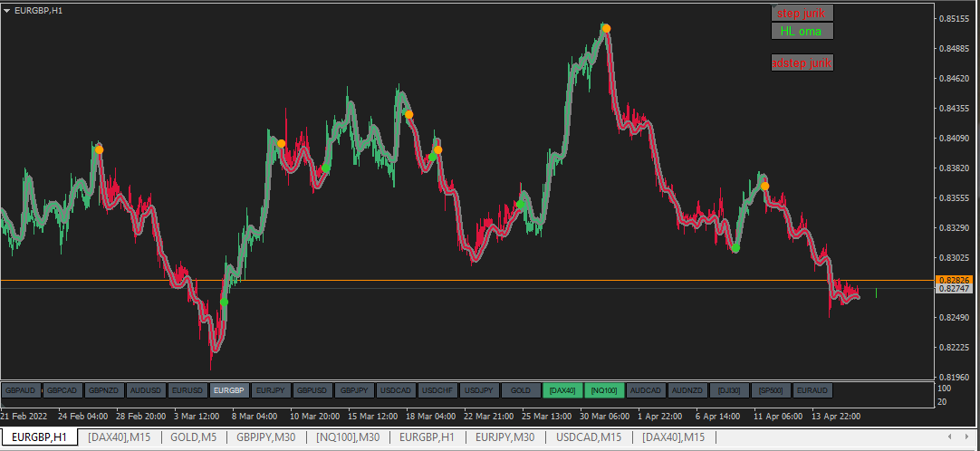 I think ... everyone can use the indicator differently ... You must experiment with the parameters ... In picture is HL OMA period 34 with speed 7 ... It doesn't look bad as a trend indicator ...trailingedge wrote: Mon Apr 18, 2022 7:18 am Howdy all.