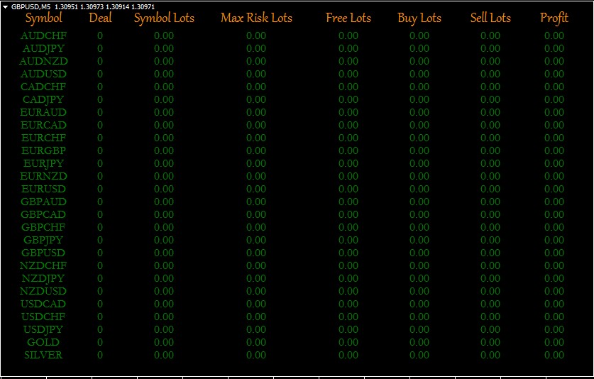 Free Lots — show the difference between the value of the Max Risk Lot and Lots Symbol;
